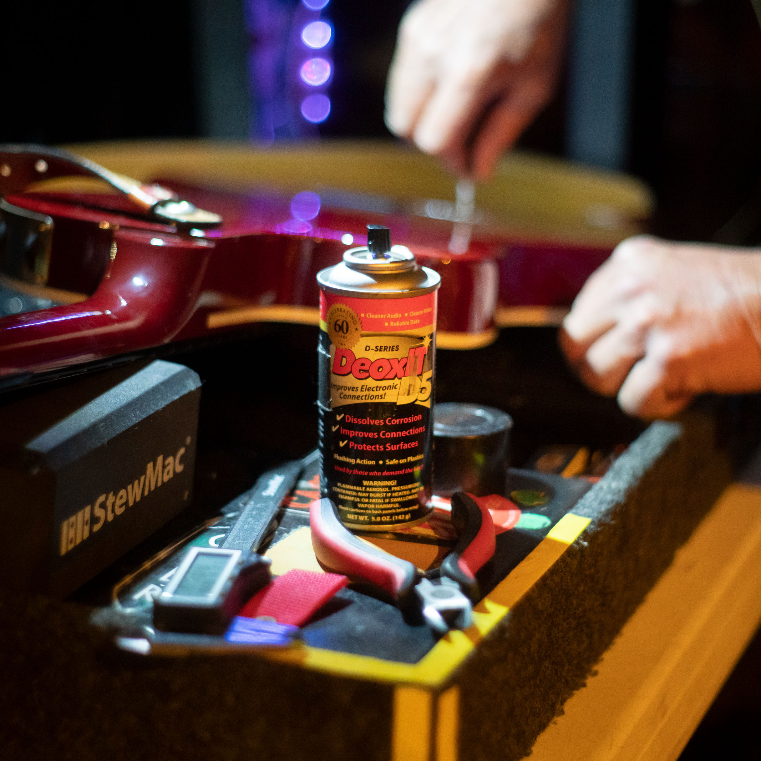Nettoie les contacts électriques pour un meilleur son. Le spray en une étape pour nettoyer les potentiomètres de contrôle et les interrupteurs sales et bruyants dans les guitares et les amplificateurs !