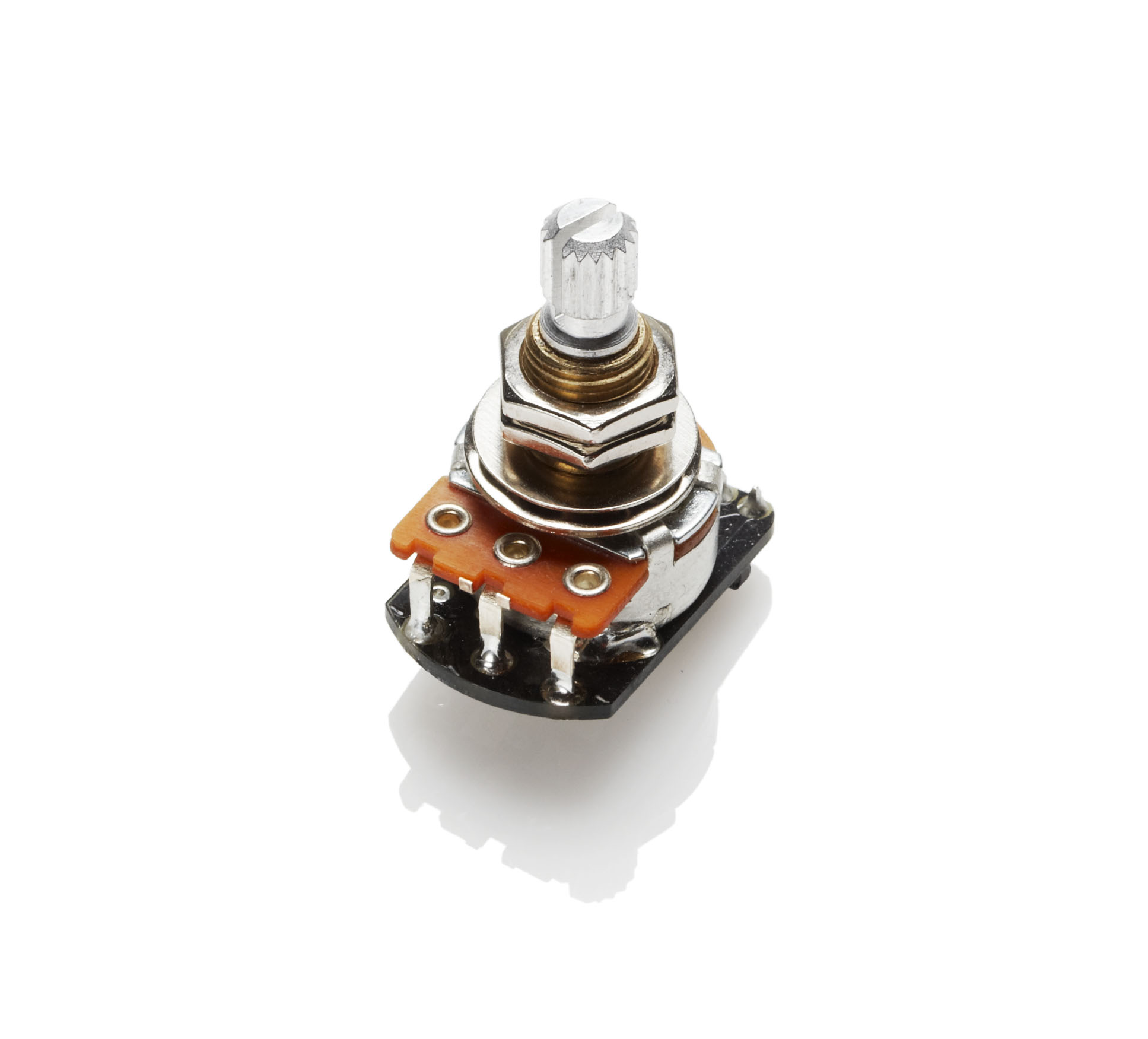 • Pot de volume à arbre long 25k , SANS SOUDURE - Potentiomètre de remplacement de volume de taille Strat® standard.