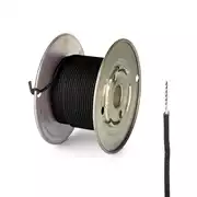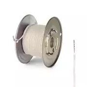 Le fil conducteur simple non blindé 22 AWG est étamé et torsadé, avec un revêtement blanc en célanèse et une isolation extérieure en coton tressé ciré. L’isolation du tissu se repousse simplement pour exposer le fil conducteur central.
