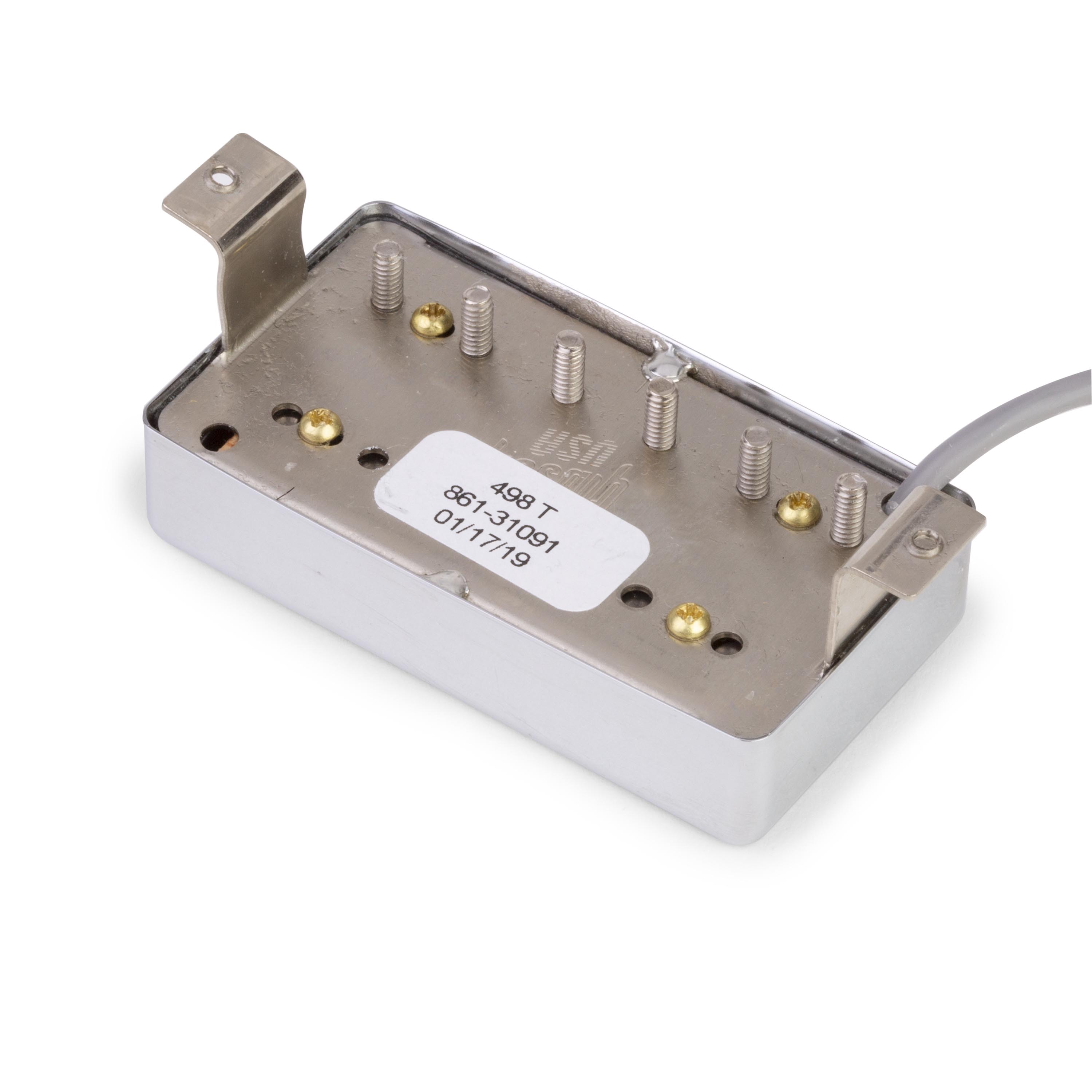 Version haute puissance du 490T, le 498T humbucker de Gibson combine la réponse plus puissante d'un aimant Alnico V avec des enroulements supplémentaires assortis sur chaque bobine, ce qui met l'accent sur les fréquences moyennes supérieures du capteur pour un croquant et une durabilité améliorés. Le 498T est parfait pour toutes les applications de hard rock, en surconduisant facilement les amplificateurs pour une sortie voluptueuse et crépitante qui augmente la puissance et la présence de n’importe quelle guitare.