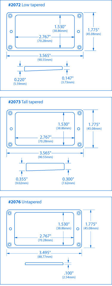 3-9/16" x 1-25/32" (90,49 mm x 45,24 mm), disponibles en deux hauteurs :