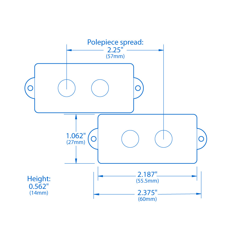 - Écartement de la pièce polaire : 2,25" (57 mm) sur les deux couvercles