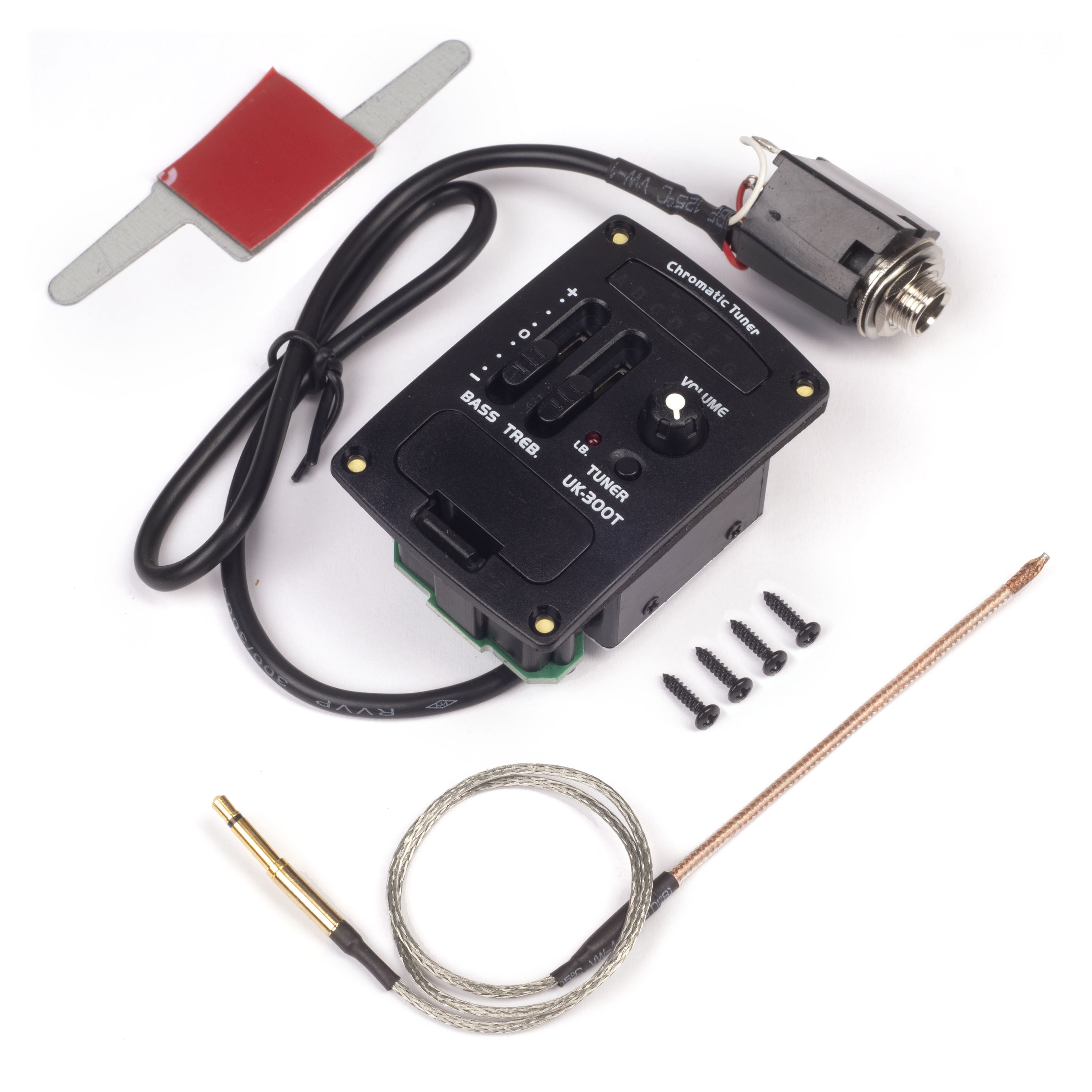 Le système comprend tout ce dont vous avez besoin : micro-capteur de sous-selle, préamplificateur, jack et même mécaniques. Les instructions comprennent également un guide d’installation et un modèle pour l’installer dans votre instrument.