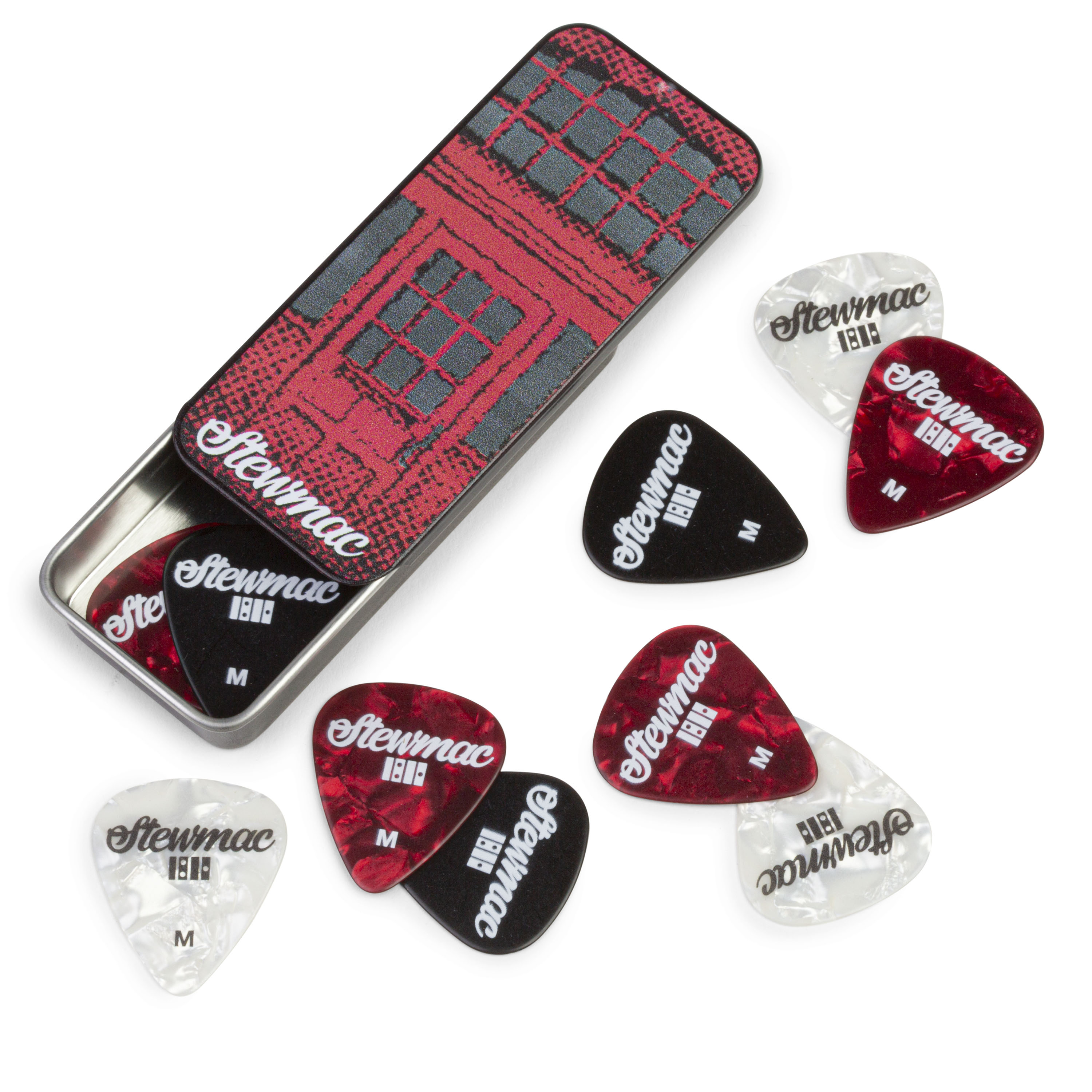 Conçu sur mesure pour nous par Dunlop et orné d’œuvres d’art de Hamster Labs, ce moule en métal au format de poche présente notre siège historique et comprend 10 choix de celluloïdes de taille moyenne avec différents designs. Celluloid a une attaque rapide et un ton clair, l’un des joueurs préférés depuis des décennies.