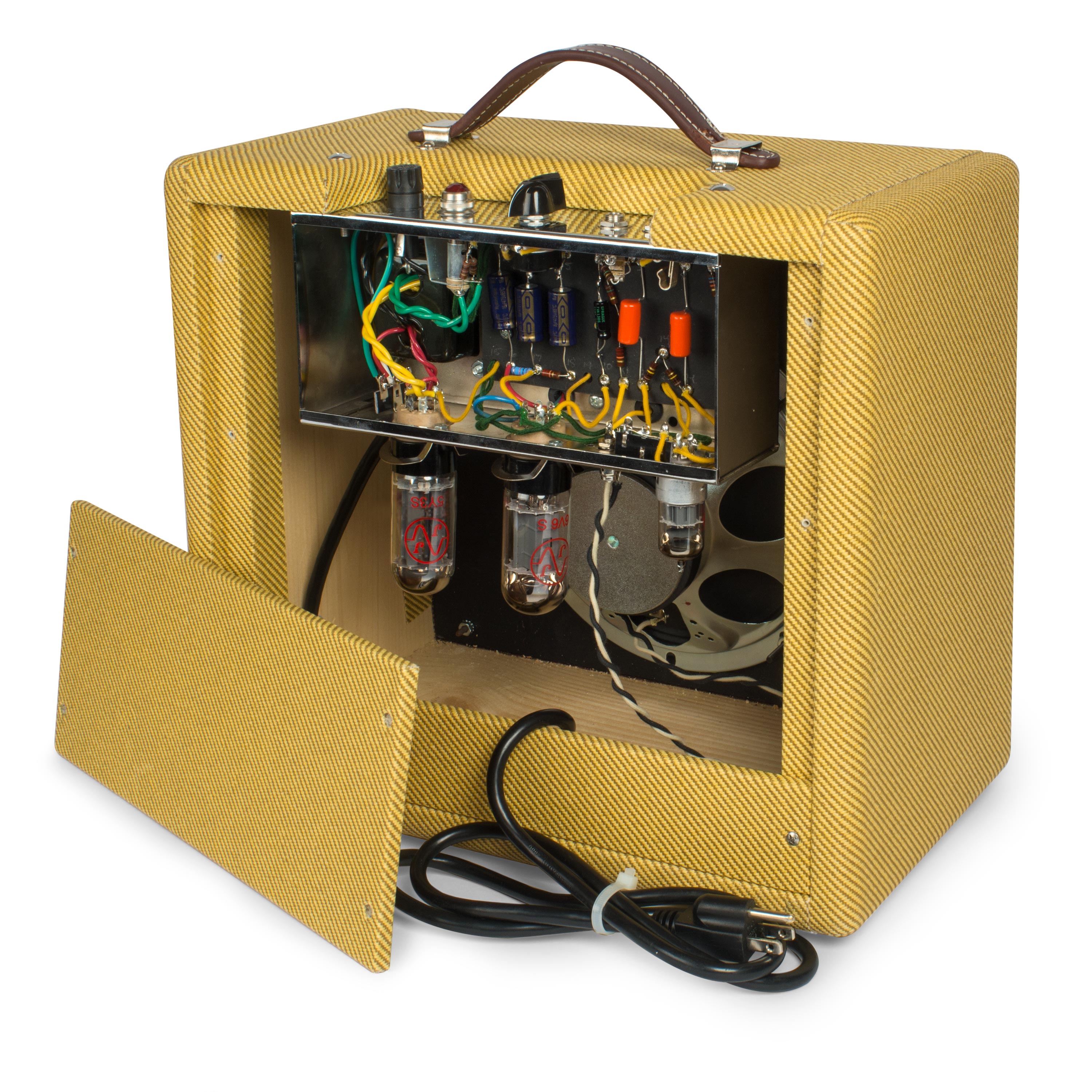 StewMac a recréé avec soin cet ampli intemporel à travers son amplificateur en kit 5W Mini Tweed 57'. Un de nos kits de la série Icon : des reproductions fidèles de modèles classiques vintage.