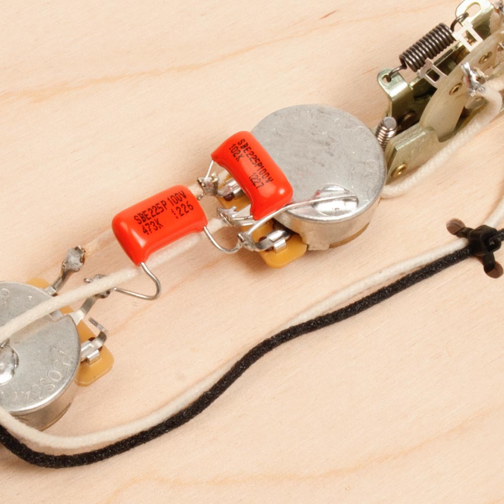 , nous avons soudé ces harnais à la main avec professionnalisme en utilisant les meilleurs composants de marque pour une longue durée de vie et un son exceptionnel : 3 positions swtich de levier CRL, potentiomètres CTS, condensateur Push-pull Pots®, jack de sortie Switchcraft et fil de push-back en tissu. Bonus : les boutons noirs du corps et du sélecteur supérieur sont inclus !