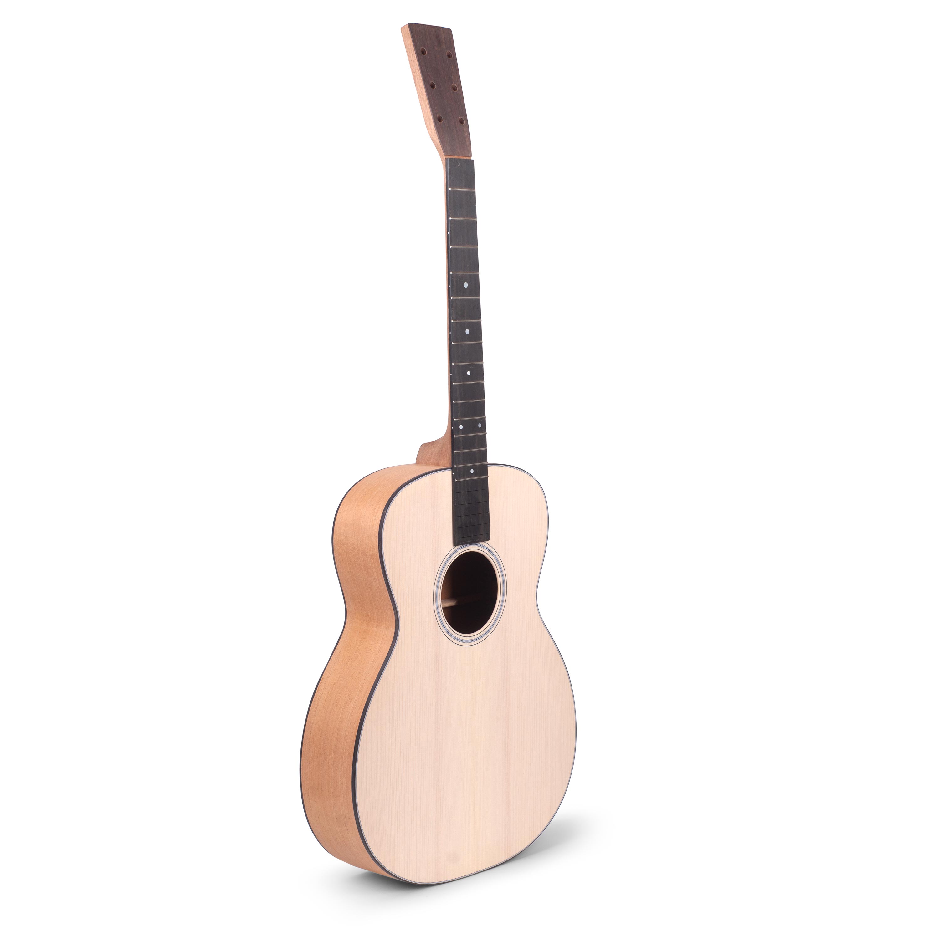 Soyons honnêtes, les bois sont la base de ces grandes guitares, et nous savions que nous devions les garder aussi fidèles que possible à l’original. Nous avons sélectionné à la main notre meilleur AAA Honduran Mahogany (Swietenia macrophylla) pour chaque ensemble de dos et de côtés. Nous l’avons ensuite associé à l’Adirondack Red Spruce (Picea rubens) le plus léger et le plus rigide de notre réserve, comme ils l’ont fait à Nazareth dans les années 1930. Et enfin, nous avons sélectionné les fingerboards et les bridges en ébène les plus noirs pour ces kits. Comme il est illégal d’utiliser de l’ivoire éléphant, nous utilisons notre os le plus fin pour l’écrou et la selle.