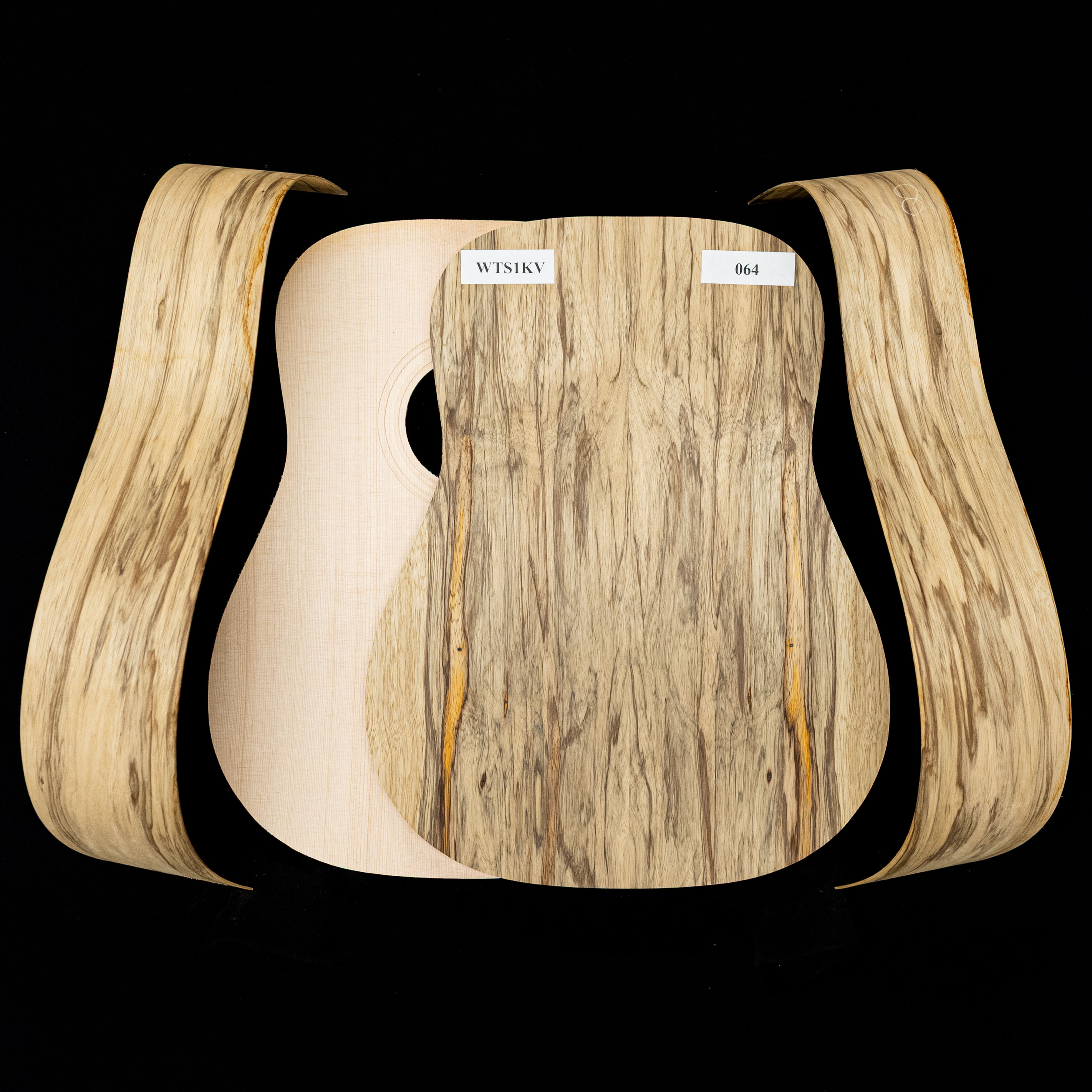 Nous avons photographié chaque ensemble individuellement. Ce que vous voyez sur la première image est le bois réel que vous recevrez. Zoomez et découvrez la silhouette unique de chaque ensemble, le grain et chaque détail du dos, des côtés et du haut de votre kit, et préparez-vous à créer la guitare de vos rêves.