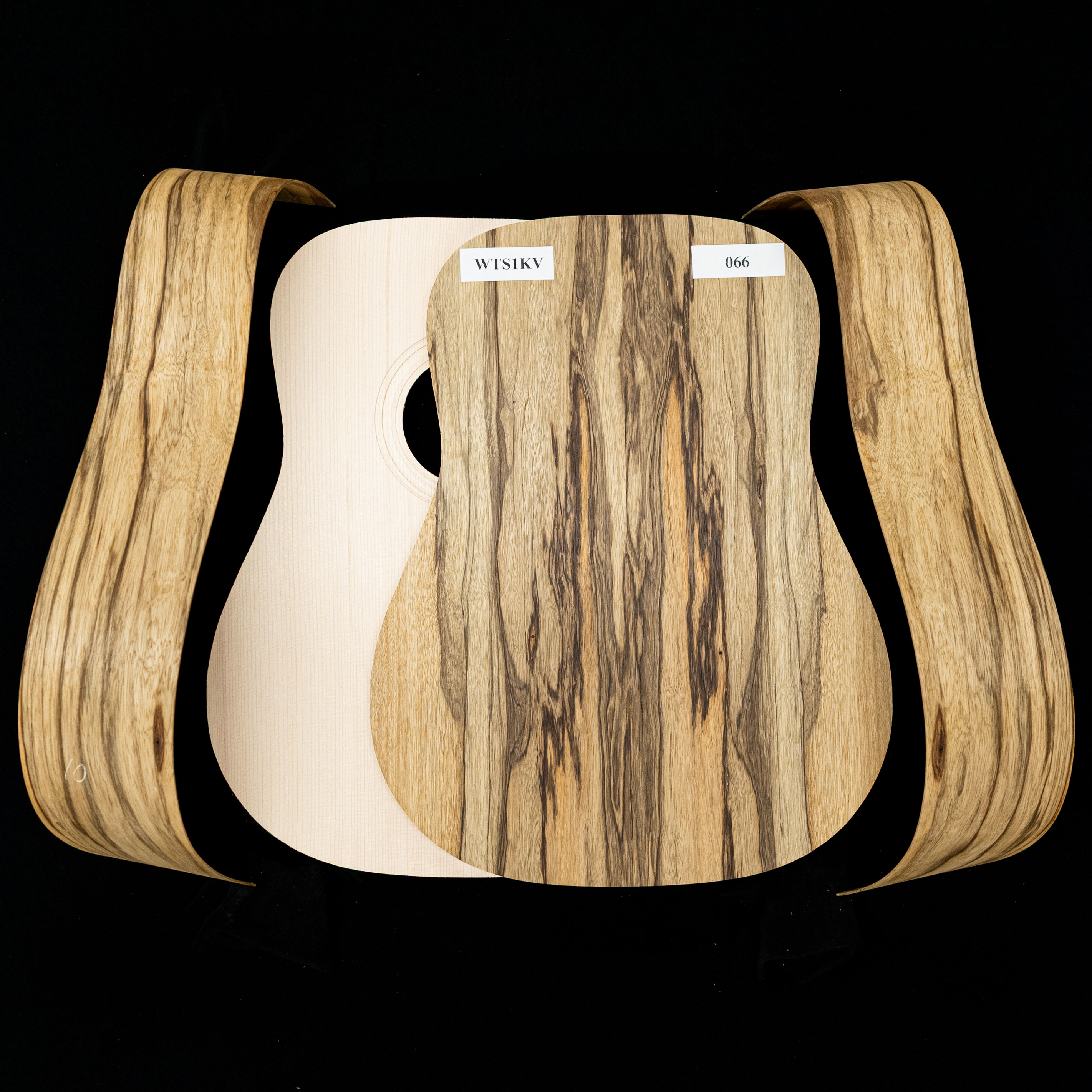 Nous avons photographié chaque ensemble individuellement. Ce que vous voyez sur la première image est le bois réel que vous recevrez. Zoomez et découvrez la silhouette unique de chaque ensemble, le grain et chaque détail du dos, des côtés et du haut de votre kit, et préparez-vous à créer la guitare de vos rêves.