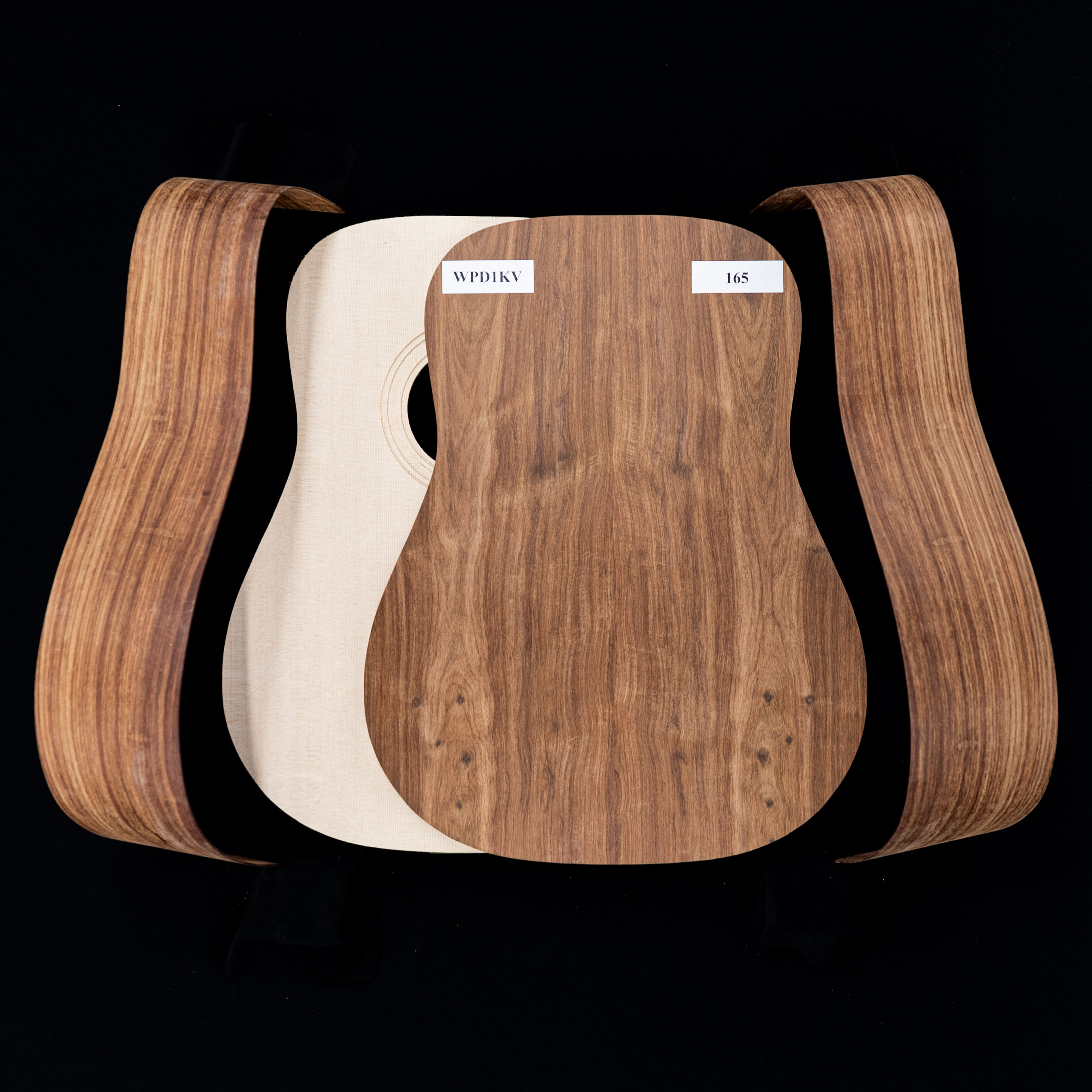 Nous avons photographié chaque ensemble individuellement. Ce que vous voyez sur la première image est le bois réel que vous recevrez. Zoomez et découvrez la silhouette unique de chaque ensemble, le grain et chaque détail du dos, des côtés et du haut de votre kit, et préparez-vous à créer la guitare de vos rêves.