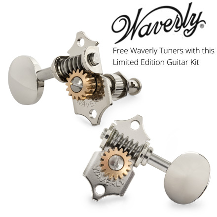 Une guitare de ce calibre mérite les meilleurs accordeurs au monde, nous vous offrons donc un jeu GRATUIT de machines à régler Waverly avec votre kit. Ces tuners sont dotés de boutons ovales vintage avec un placage nickel très poli. Élégants et précis, les Waverly’s sont fabriqués à la main aux États-Unis avec la même fierté et la même patience que vous mettrez dans votre instrument. Tous les Waverly’s sont livrés avec une garantie à vie inconditionnelle.