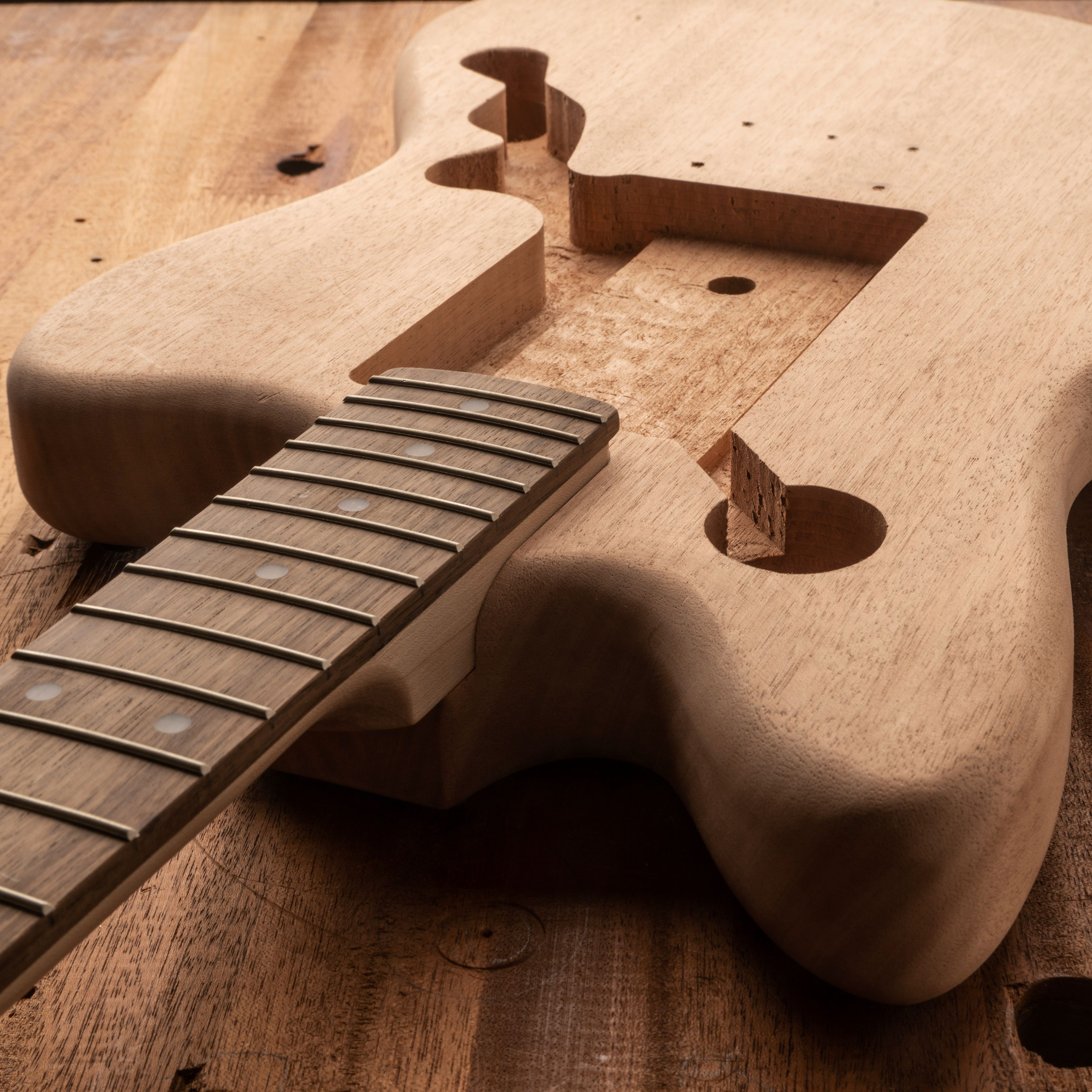 Le manche est adapté à chaque corps pour une connexion solide et une installation facile. L’ fresado est propre et les trous de pont sont percés à l’emplacement parfait. Avec un minimum de préparation, vous êtes prêt à appliquer le fini.
