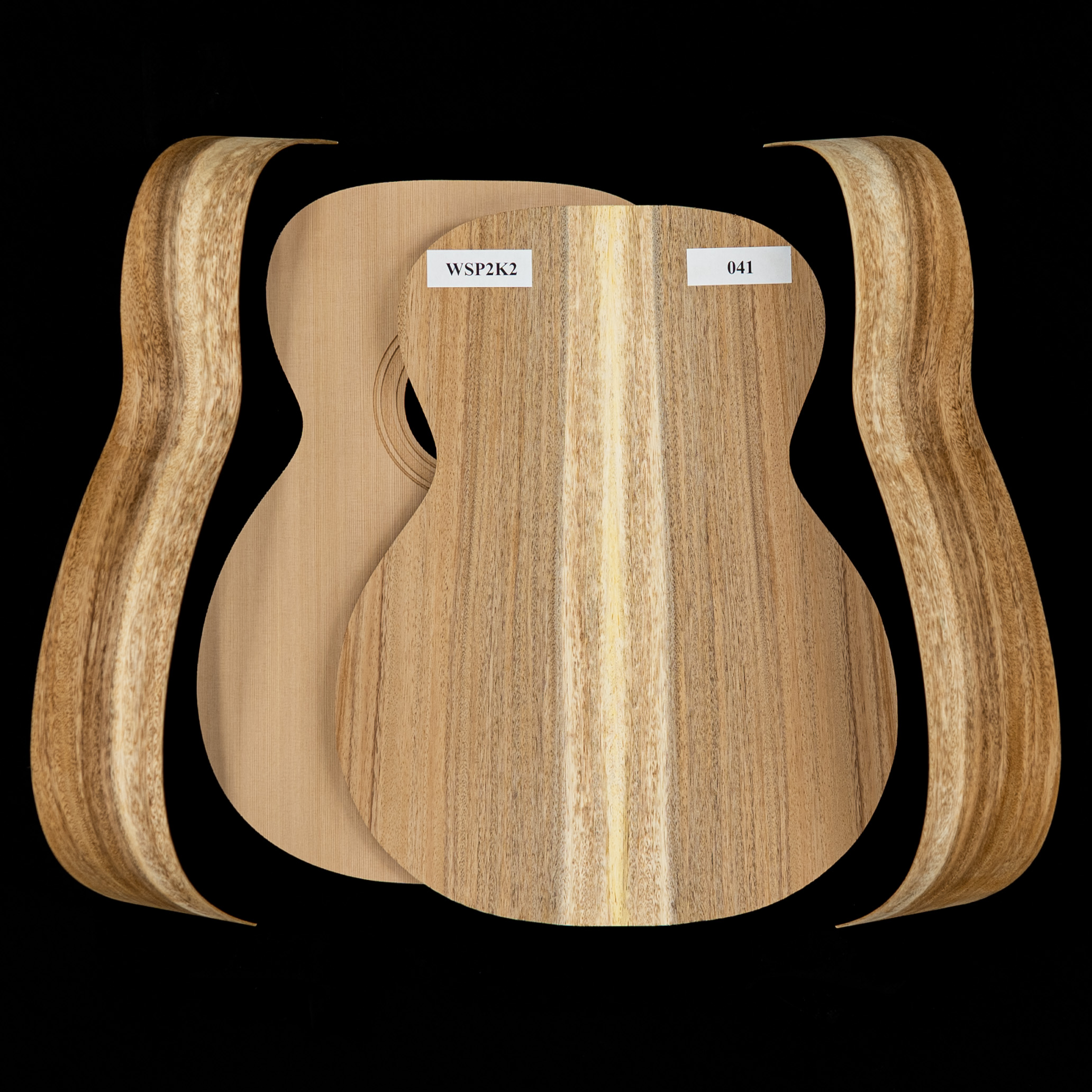 Nous avons photographié chaque ensemble individuellement. Ce que vous voyez sur la première image est le bois réel que vous recevrez. Zoomez et découvrez la silhouette unique de chaque ensemble, le grain et chaque détail du dos, des côtés et du haut de votre kit, puis commencez à créer la guitare de vos rêves.