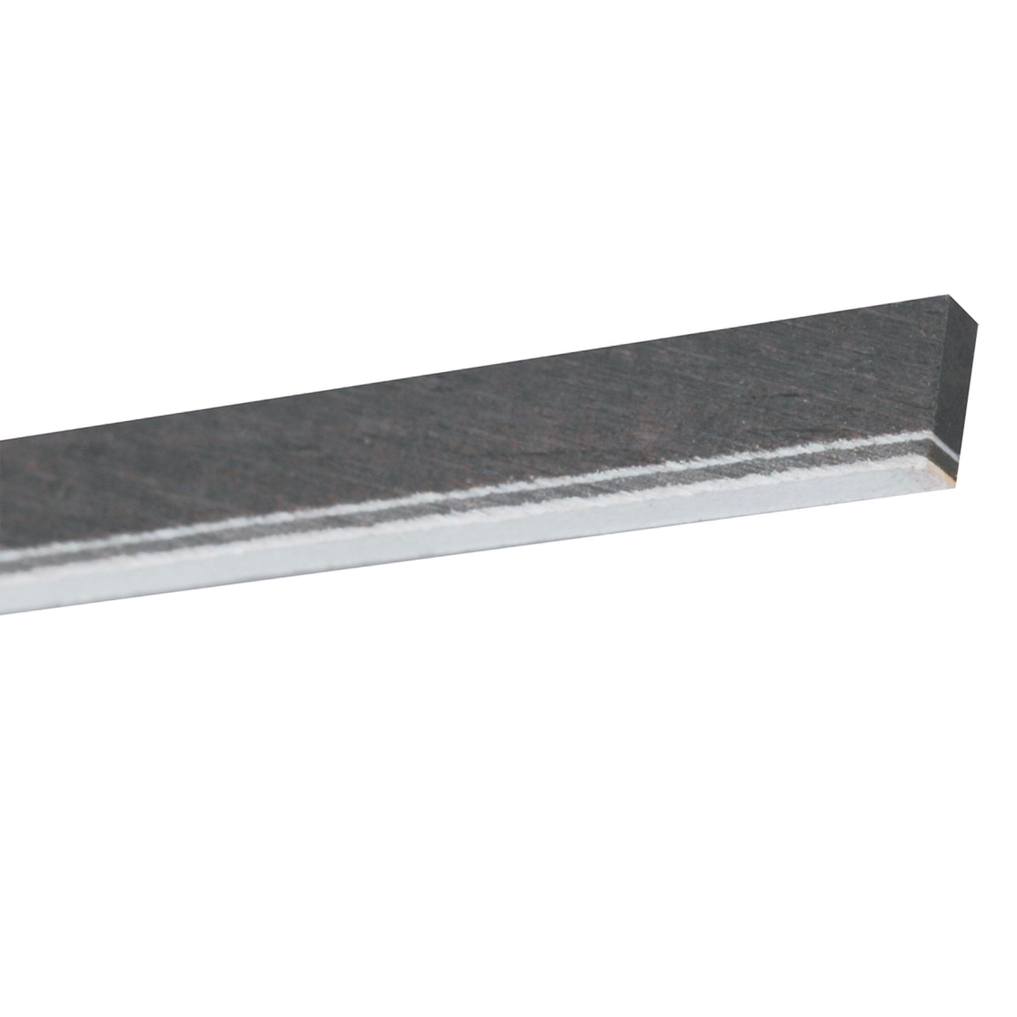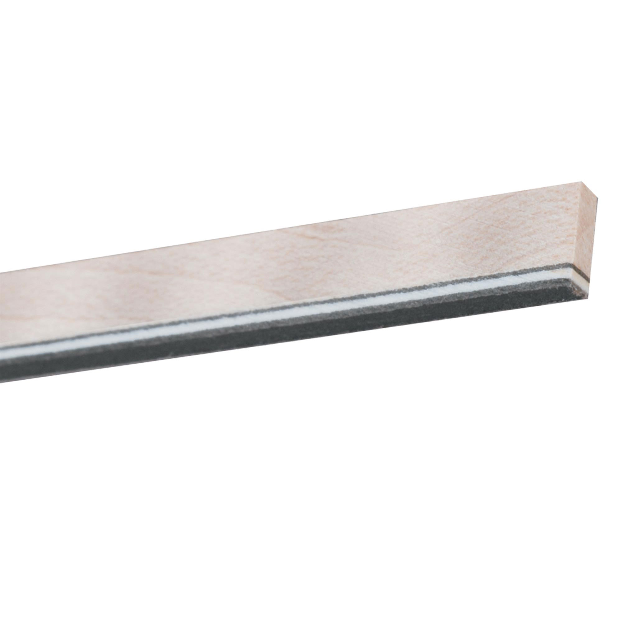 Chaque bande non pliée mesure environ 0,080 po d’épaisseur, 0,250 po de hauteur et 33-1/2 po de longueur (2,03 mm x 6,35 mm x 850,90 mm). Le triple laminage en option est une fibre blanche et noire de 0,0,0 po/0,0,0 po/0,0,0 po.