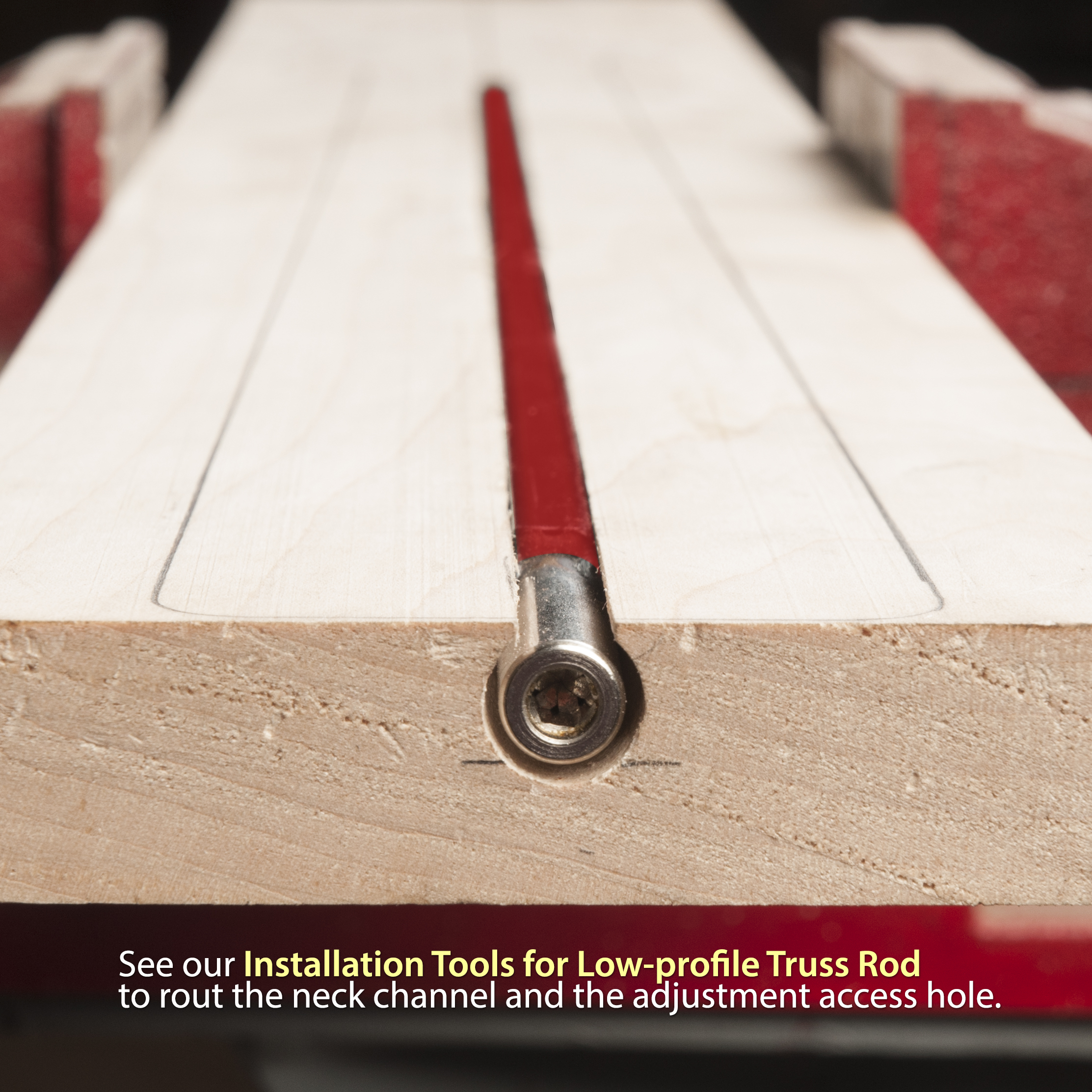 L’ingéniosité de ce cette tige de réglage double action réside dans sa capacité à s’insérer dans une rainure droite de 1/4 po de large et 3/8 po de profondeur (mesures effectuées à partir du dessous de la touche). L’écrou de réglage tourne en douceur dans une douille nickelée ; nécessite une clé hexagonale de 4 mm (non incluse). Les tiges en acier sont entourées d’un film plastique pour éviter les cliquetis.