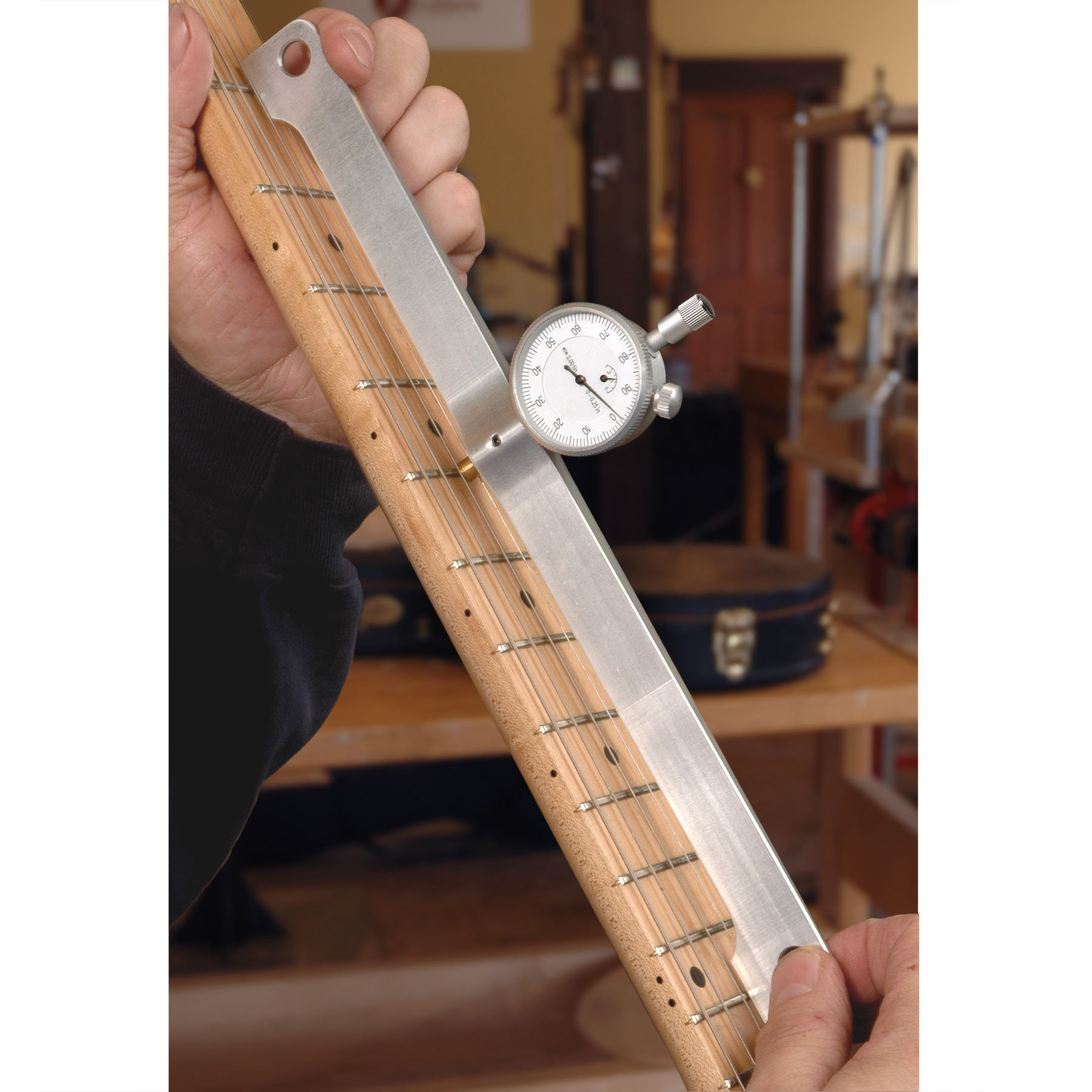 - Configuration de précision : vos configurations seront plus rapides que jamais grâce à des outils permettant de trouver des frettes élevées, de faire correspondre les rayons touche et du pont, de protéger les panneaux de fret, de soutenir les manches acoustiques et électriques, d’évaluer le soulagement du manche et de définir l’action la plus confortable.