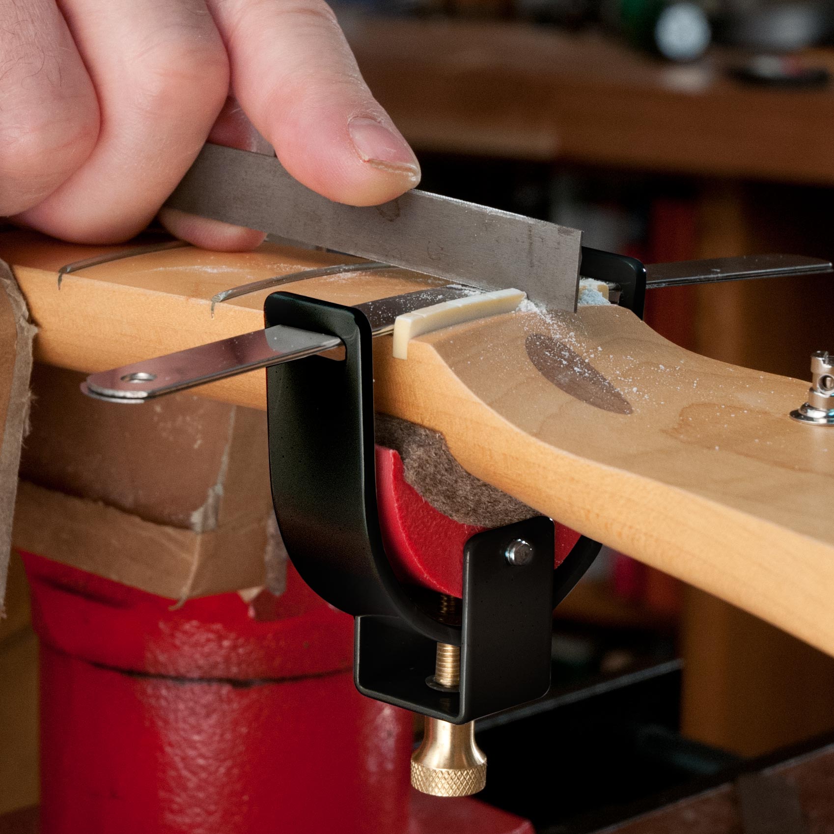 - Nivelez rapidement tout nouveau fretboard : trois tailles de barres de nivellement de précision vous permettent de poncer un fretboard de mandoline, de guitare ou de basses en même temps.