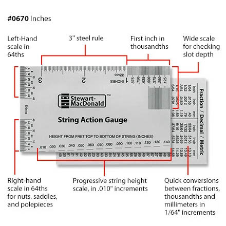 Mesurez la hauteur de votre corde et la configuration de votre sillet de pont avec précision, un élément essentiel pour composer votre ambiance de jeu.