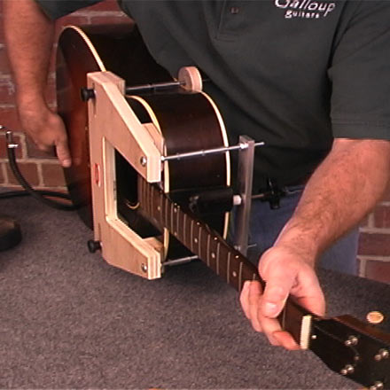 • Bryan réinitialise un manche Gibson J-45 et le repositionne pour corriger les problèmes d’intonation.