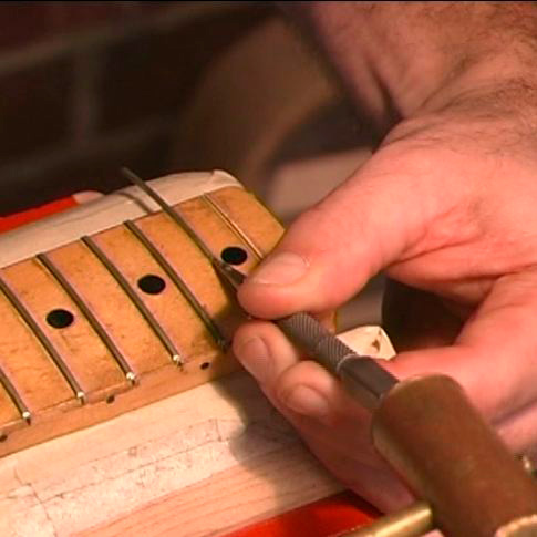 Apprenez la réparation de guitare professionnelle ! Suivez les instructions de base de fret telles que l’installation et le dressage, en passant par les réfections complexes et le frettage pour l’atelier de production.