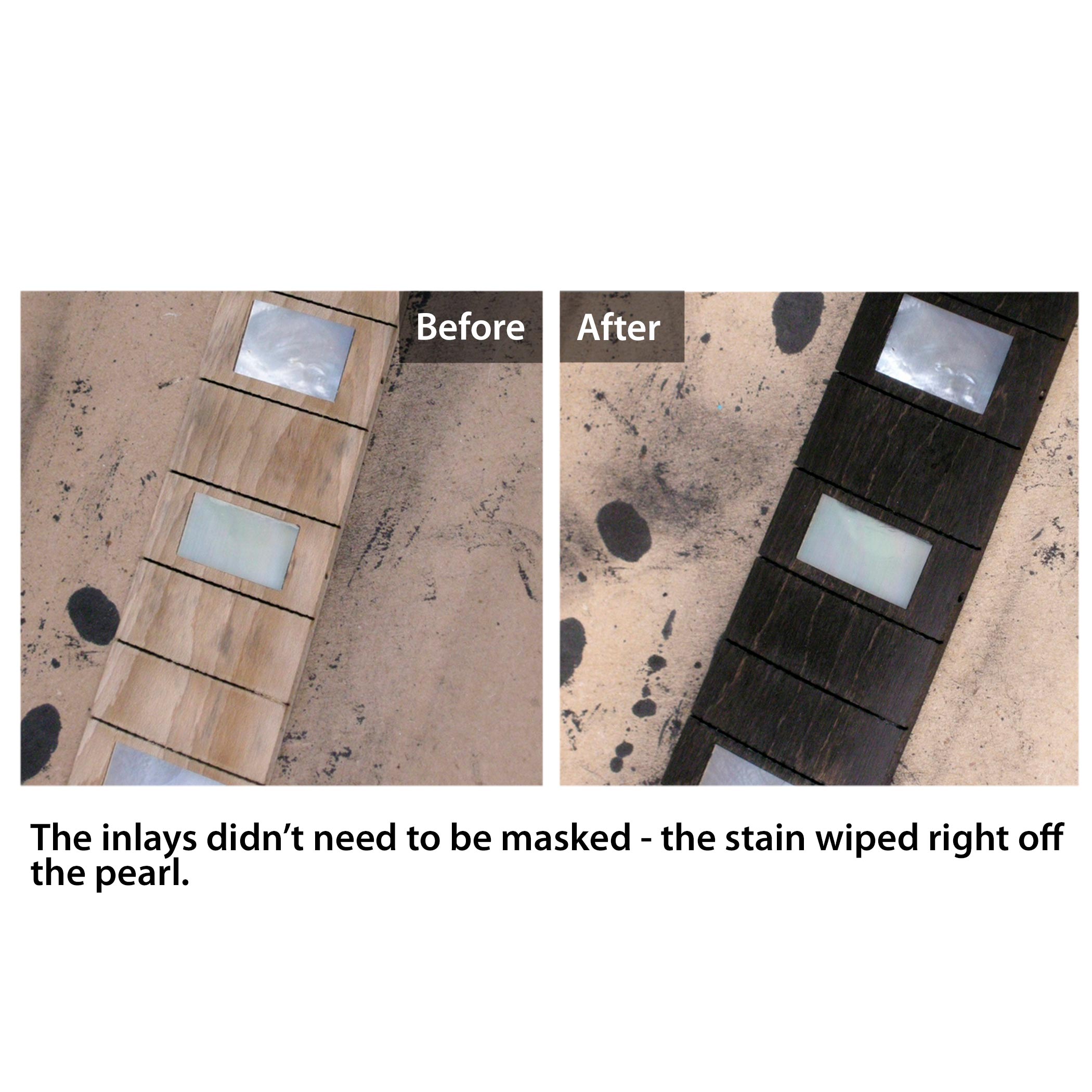 Utilisez-le pour assombrir les panneaux de doigts, les ponts, les pièces d’extrémité et les placages placage de tête nouveaux ou anciens en ébène sur les guitares, les violons, les mandolines et les banjos.