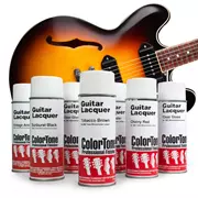 Les aérosols de nitrocellulose ColorTone sont conçus pour une finition professionnelle, dès la sortie de la boîte. Ces aérosols sont faciles à appliquer et parfaits pour les nouvelles finitions ou retouches. Nous avons conçu les laques et les buses de pulvérisation spécialement pour la finition guitare. La laque nitro est le choix traditionnel pour les instruments fins, et c’est ce que les guitares de l’ère dorée de la 1950s et des années précédentes ont fini.
