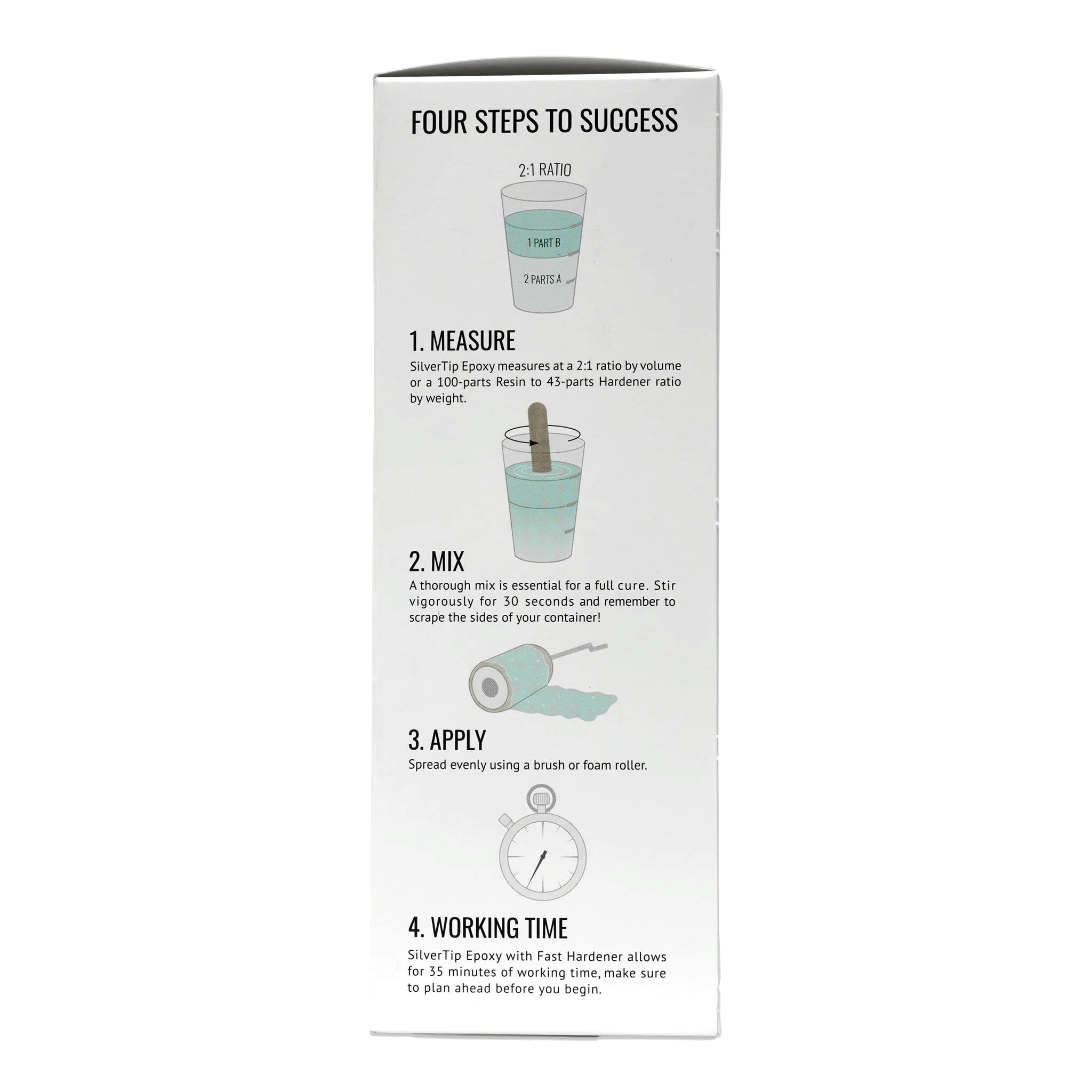 SilverTip ne rétrécit pas lorsqu’il sèche, ce que vous voyez est ce que vous obtenez. Il est appliqué comme les produits de comblement traditionnels : il suffit de mélanger, d’appliquer et de gratter l’excédent. C’est un époxy à durcissement rapide qui a 35 minutes de temps de travail, il est prêt à recouvrir en 3 heures.