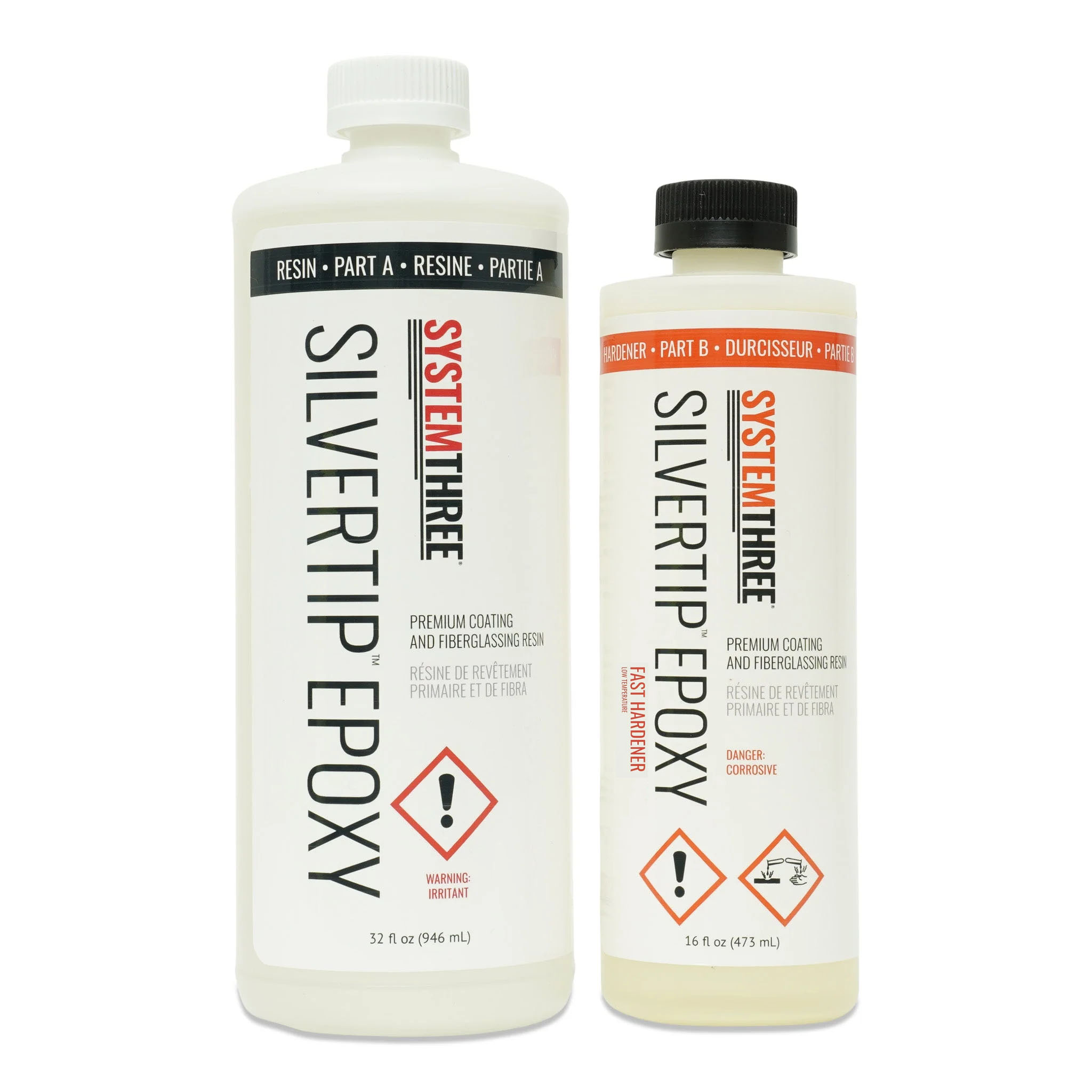 Comprend une bouteille de résine de 32 onces (9,6ml) et une bouteille de durcisseur de 16 onces (4,3ml).