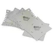 Les jauges crantées fonctionnent avec des cordes activées ! Cette nouvelle version est pratique lorsque vous souhaitez vérifier un touche sans retirer les cordes. L’ensemble comprend des encoches de chaîne étroitement espacées pour une utilisation près de l’écrou, et un espacement plus large pour une utilisation près du corps (idéal pour les panneaux de doigts à rayon composé). Cet ensemble comprend les mêmes rayons que notre ensemble habituel.