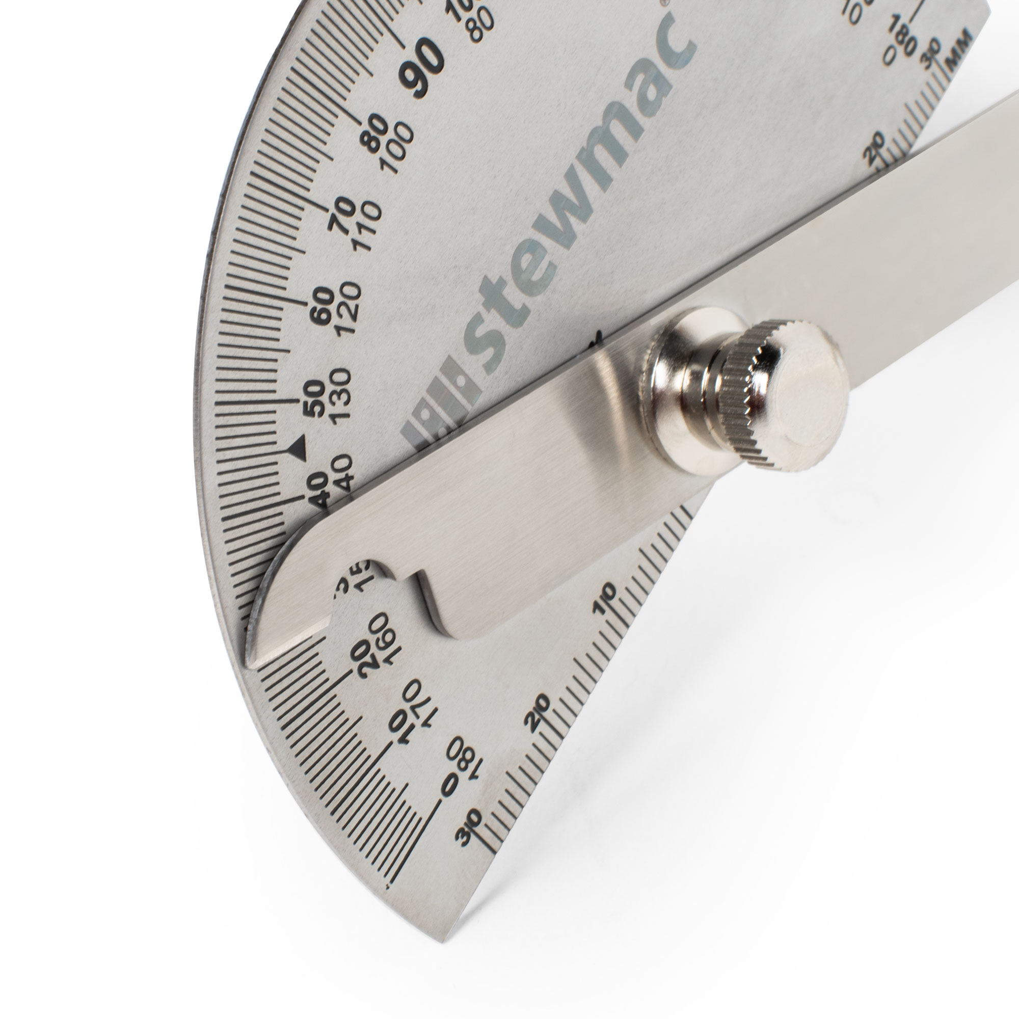 Protracteur à tête ronde de qualité professionnelle pour mesurer avec précision les angles dans le travail de la guitare : trajectoires des articulations du manche , pas de placage de tête , angles de fente de la sillet et configuration de l’outil.