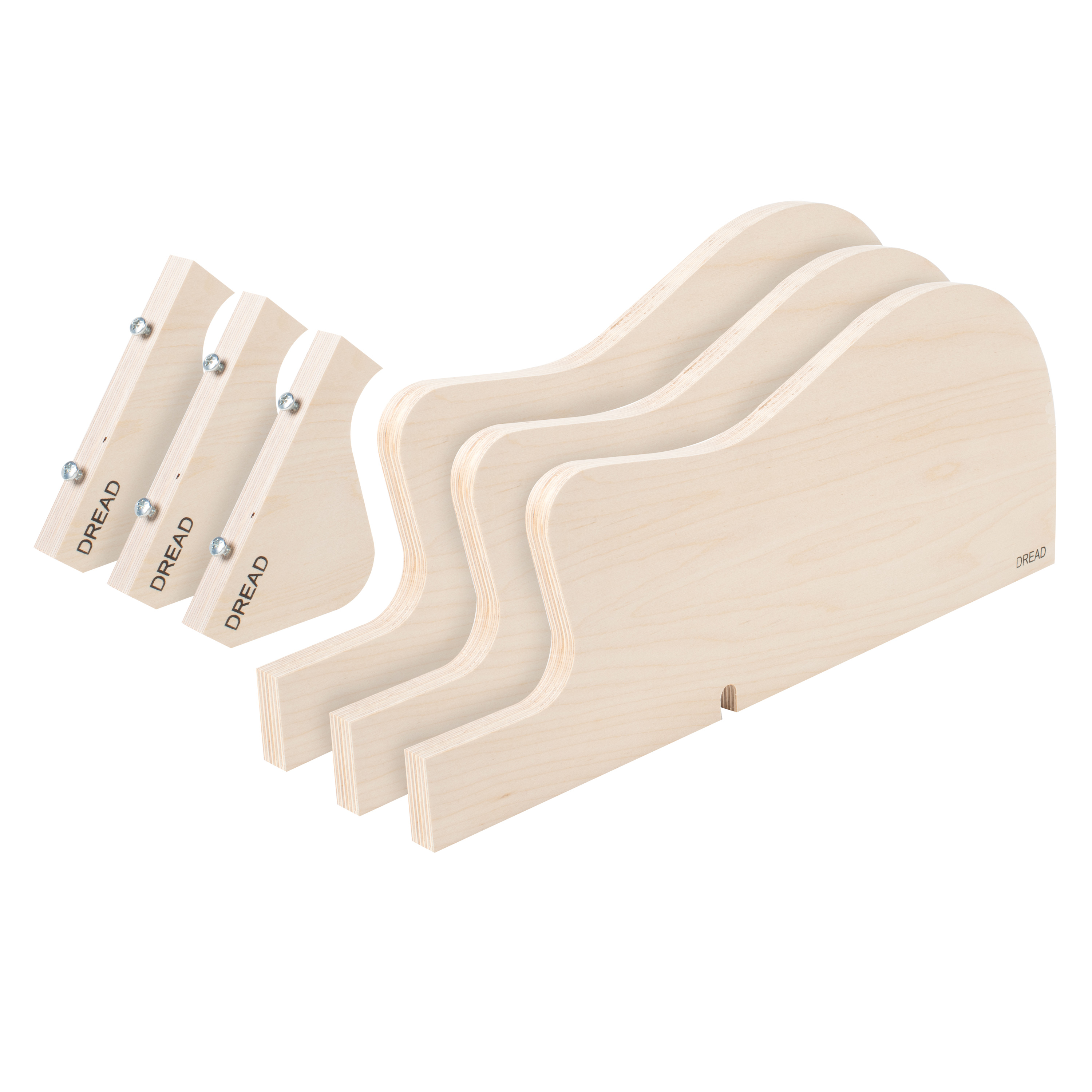Fabriquées à partir de bouleau baltique 13 couches durable, ces formes sont conçues pour durer toute une vie. Chaque ensemble comprend trois formes qui couvrent toute la largeur du côté. Le support à trois formes empêche la torsion pour des courbures constantes et reproductibles.