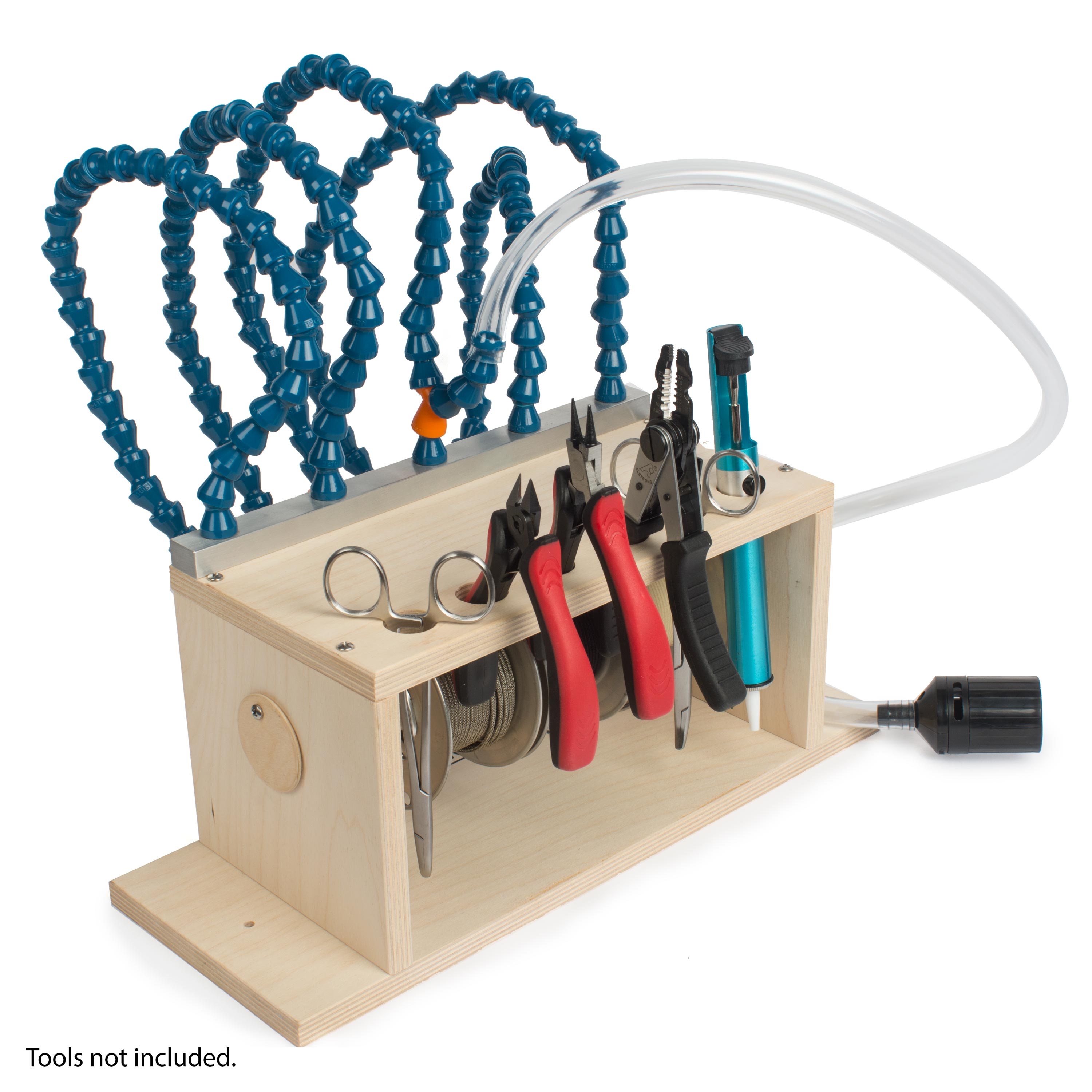 La fumée de soudure contient des toxines graves. Le soudage est un travail de proximité, et ces fumées sont juste en face de vous. Le cinquième bras du Solder Monster est un valve d’évent qui s’accroche à l’aspirateur de votre atelier, aspirant la fumée dans le filtre de votre aspirateur (kit de raccordement inclus). Placez le valve d’admission près du joint de soudure et évacuez ces poisons.