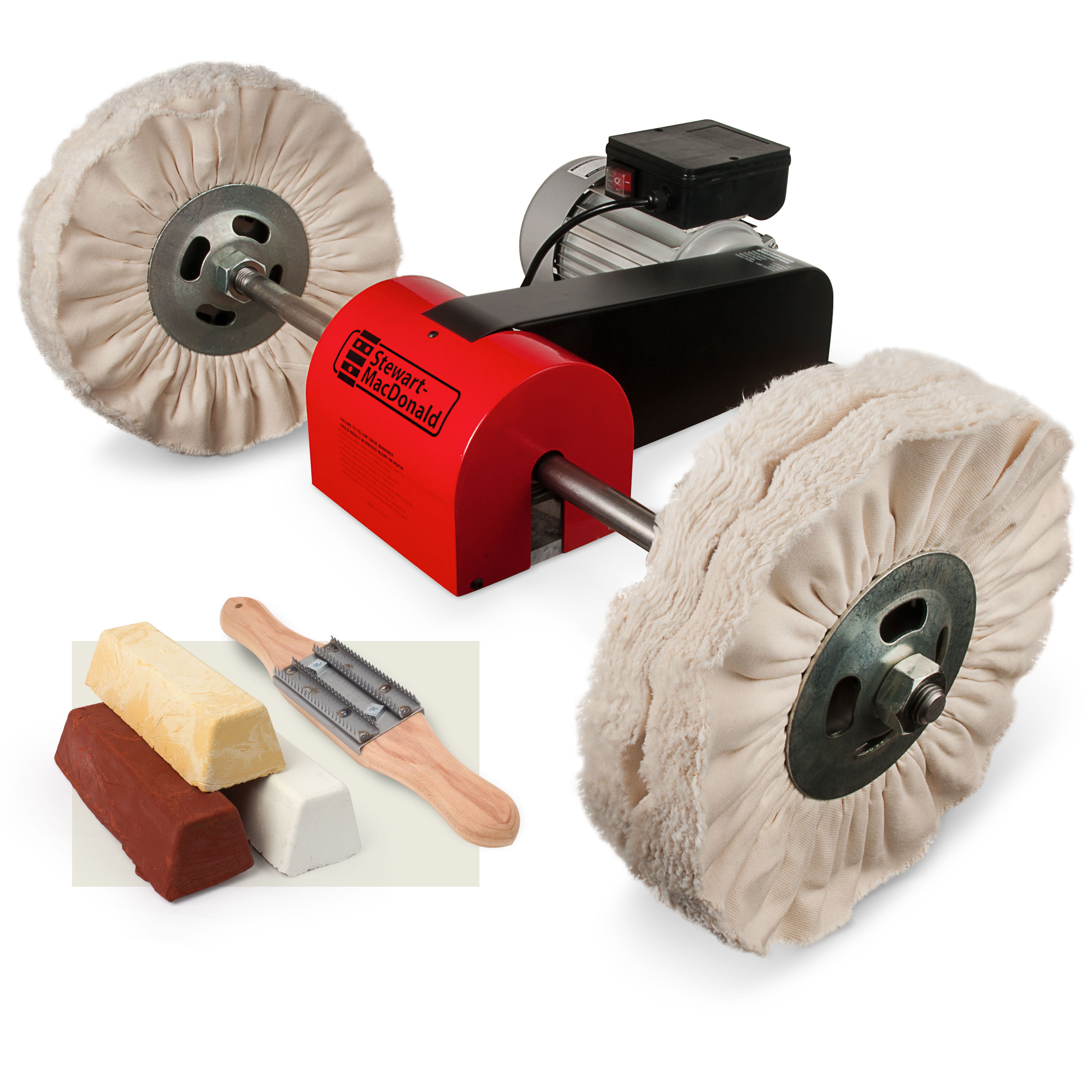 « C’est une véritable polisseuse d’usine, mais dont la taille est adaptée à un petit atelier. Les autres polisseuses offrent peu de dégagement pour l’instrument et tournent à une vitesse trop élevée, ce qui peut entraîner une surchauffe et détériorer la finition. Les équipes de fabrications de guitares et de conception d’outils de chez StewMac ont discuté des caractéristiques qu’une polisseuse devait avoir et des choses à éviter. Aucune autre société n’a conçu un système d’arbre de polissage aussi spécifiquement pour les besoins des luthiers. »