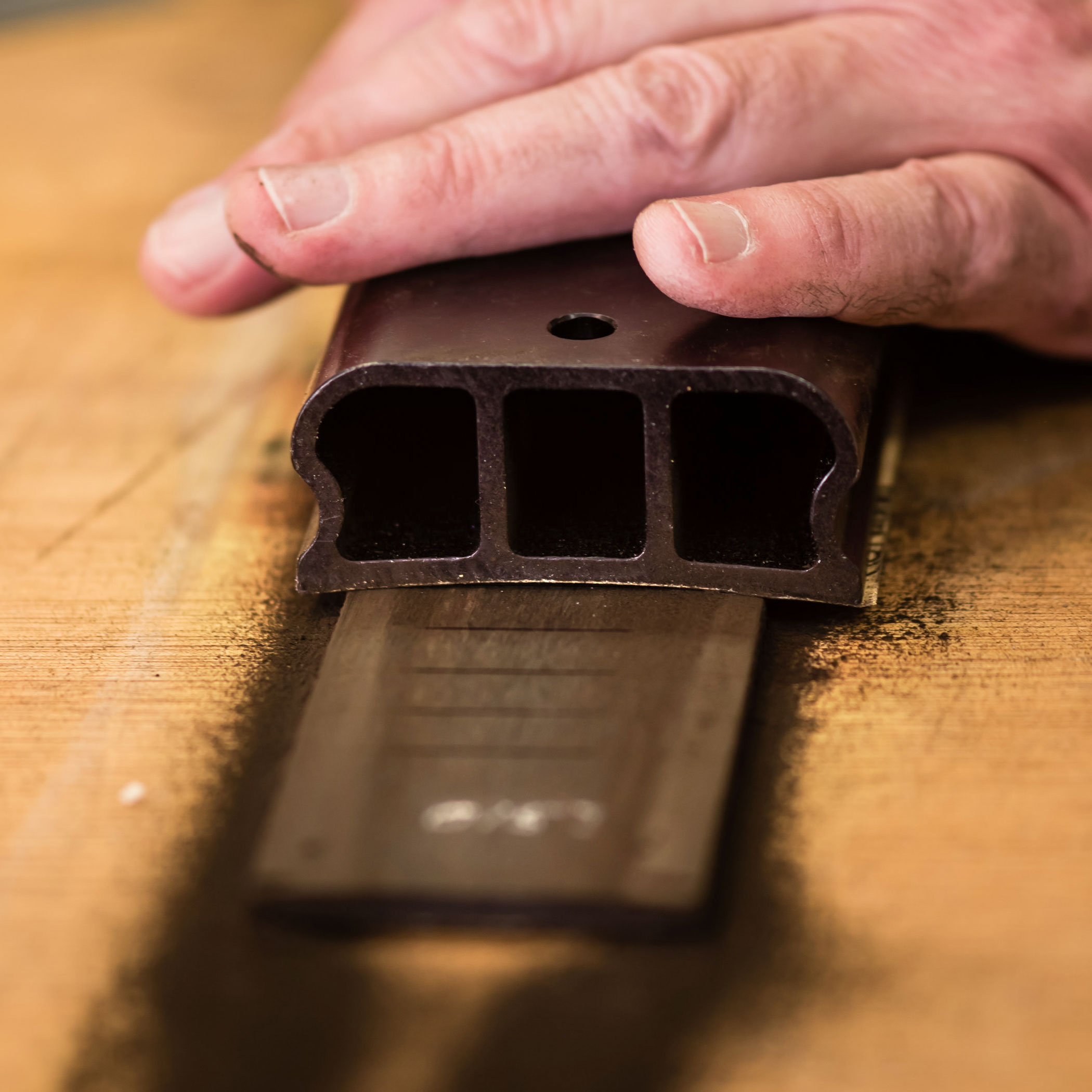 Nous avons conçu cet outil pour une utilisation à vie dans un atelier très fréquenté. Ces poutres en aluminium ultra-résistantes sont également moins sujettes aux torsions et à l’usure que les blocs en bois.