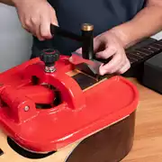 Un nouvel outil de pose de fret conçu pour poser des frets sur le corps. Pour des raisons évidentes, de plus en plus de magasins font pression sur leurs préoccupations de nos jours. Frettes pressées le long de leur siège plus rapidement, plus facilement et plus précisément que celles installées avec plusieurs tarauds à marteau.