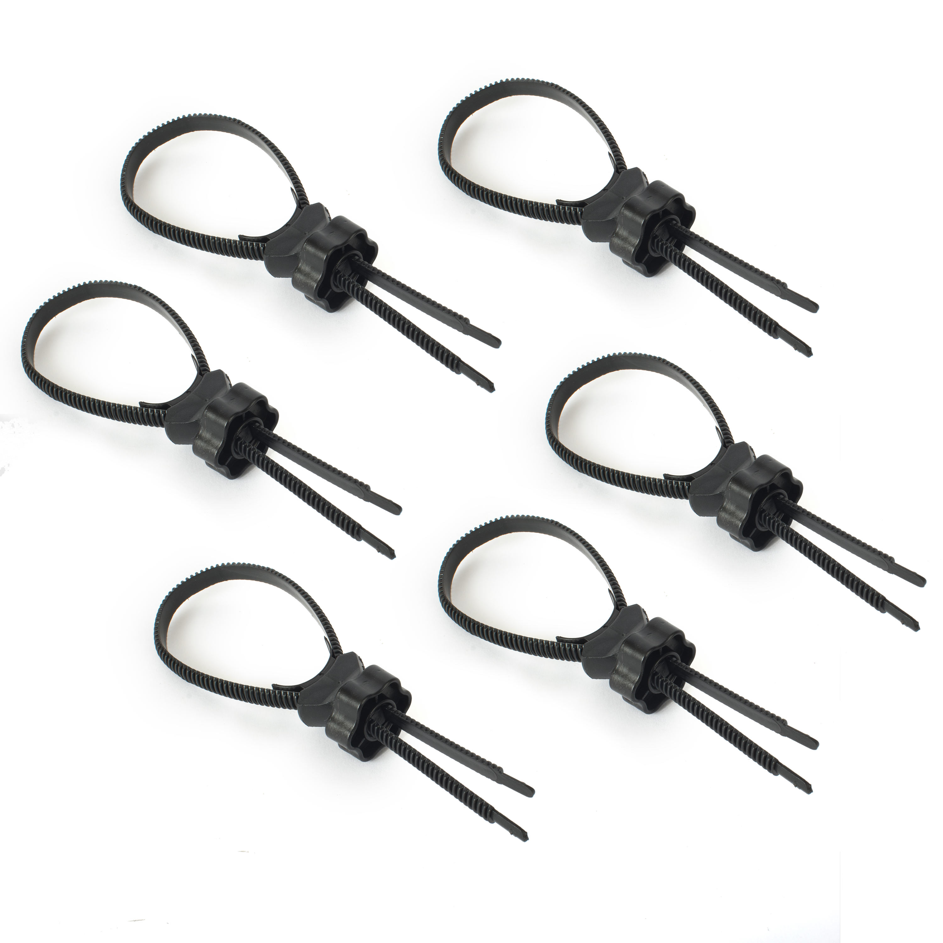 Les colliers de serrage pour touche de doigt sont un moyen rapide de coller un touche de doigt sans cauls encombrants, et une solution pratique pour les panneaux de doigt arrondis. La surface externe crantée de la bande souple résistante à la colle s’engage dans un écrou fileté en plastique qui ajuste la pression de serrage. Le support flexible s’adapte au col de l’instrument pour aider à protéger la finition.Nous recommandons de positionner un collier de serrage tous les 3" le long de la touche.