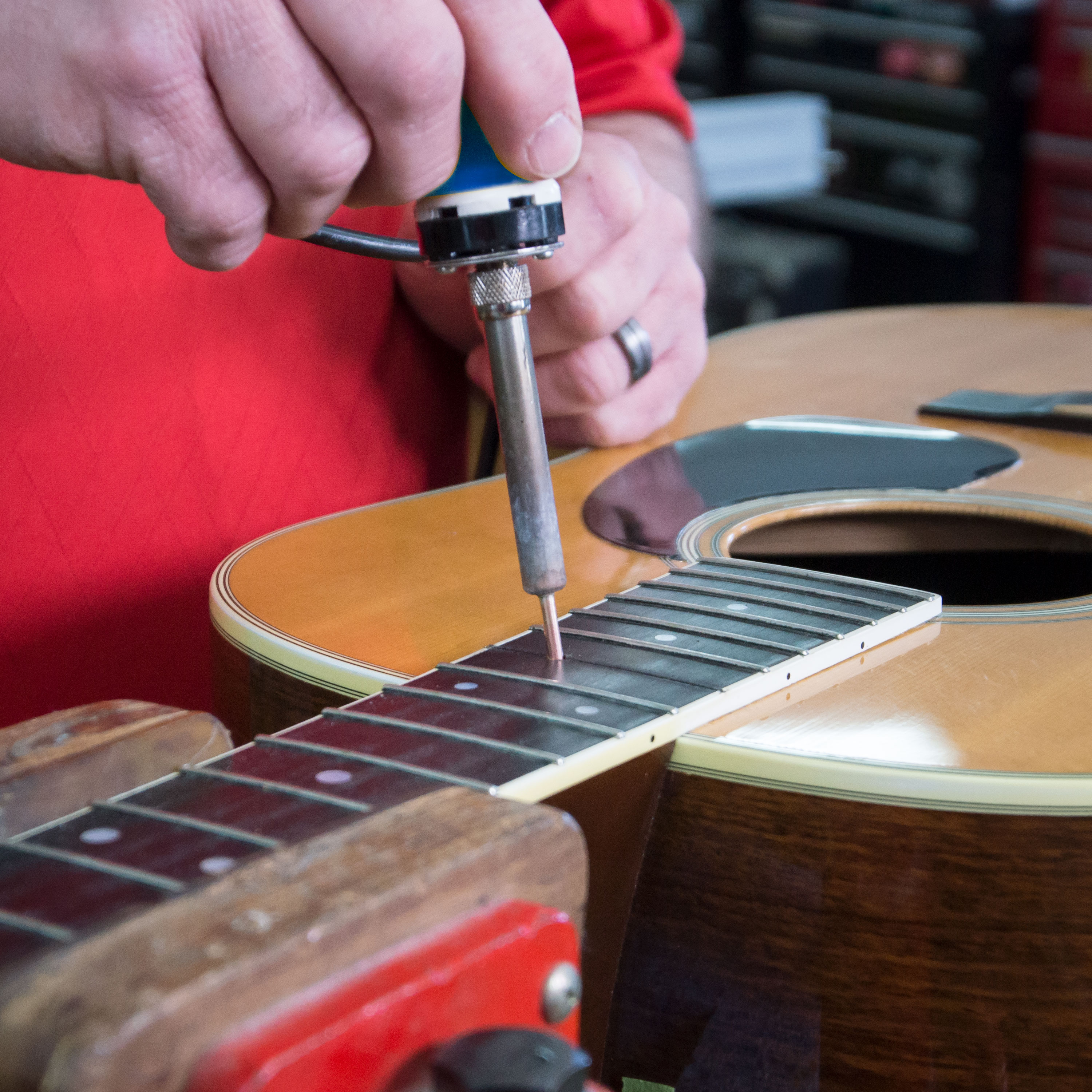 Le HeatStick révolutionnaire adoucit la colle sans rougir les finitions délicates ni desserrer le bloc de manche ou les accoudoirs comme la bombe à vapeur. Il est facile à contrôler et peut être utilisé pour les guitares et les mandolines acoustiques et électriques. Le HeatStick est en cuivre massif de 6" et comprend deux trépans pour percer le pilote et les trous d’accès à travers le panneau de fret.