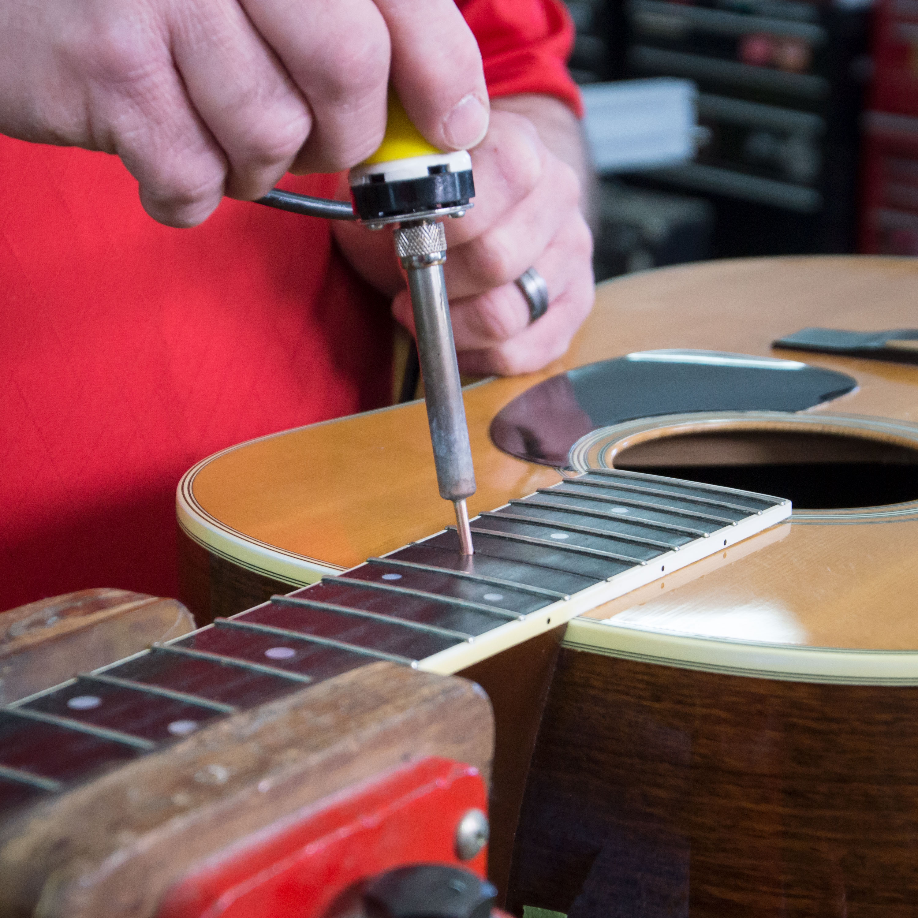 Le HeatStick révolutionnaire adoucit la colle sans rougir les finitions délicates ni desserrer le bloc de manche ou les accoudoirs comme la bombe à vapeur. Il est facile à contrôler et peut être utilisé pour les guitares et les mandolines acoustiques et électriques. Le HeatStick est en cuivre massif de 6" et comprend deux trépans pour percer le pilote et les trous d’accès à travers le panneau de fret.
