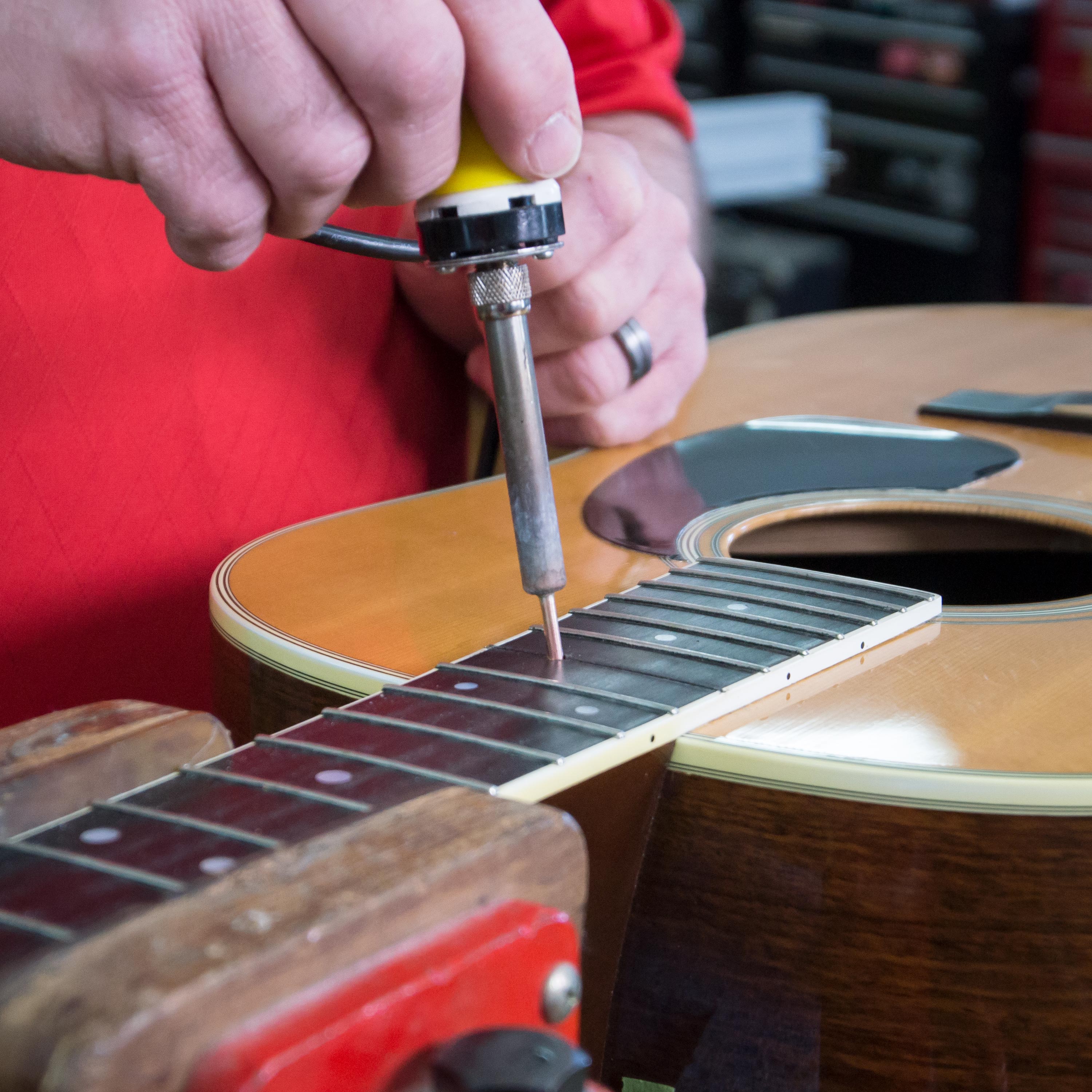 Le HeatStick s'appuie sur la chaleur de votre fer à souder pour adoucir la colle dans l'articulation du manche d'une guitare et retirer le manche.