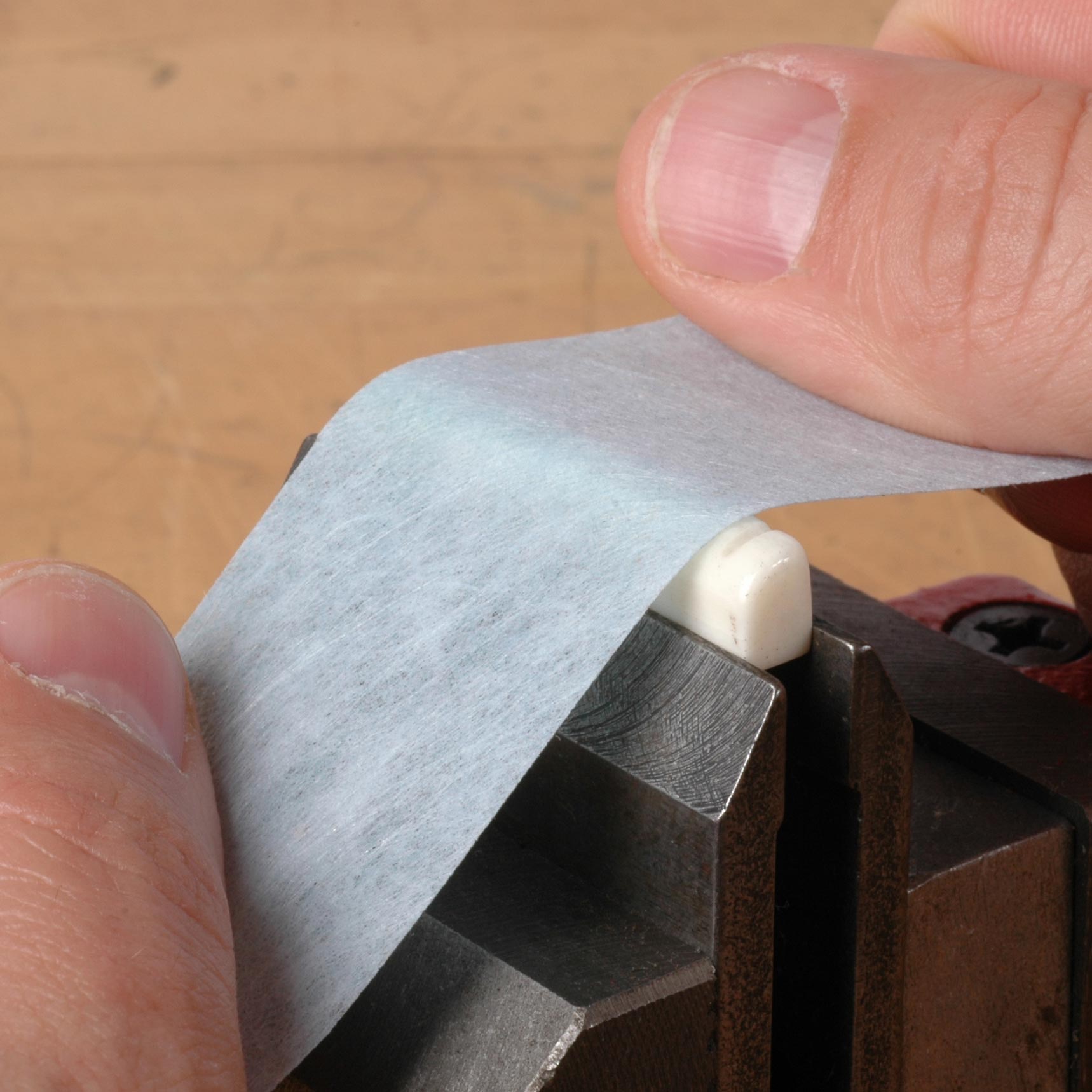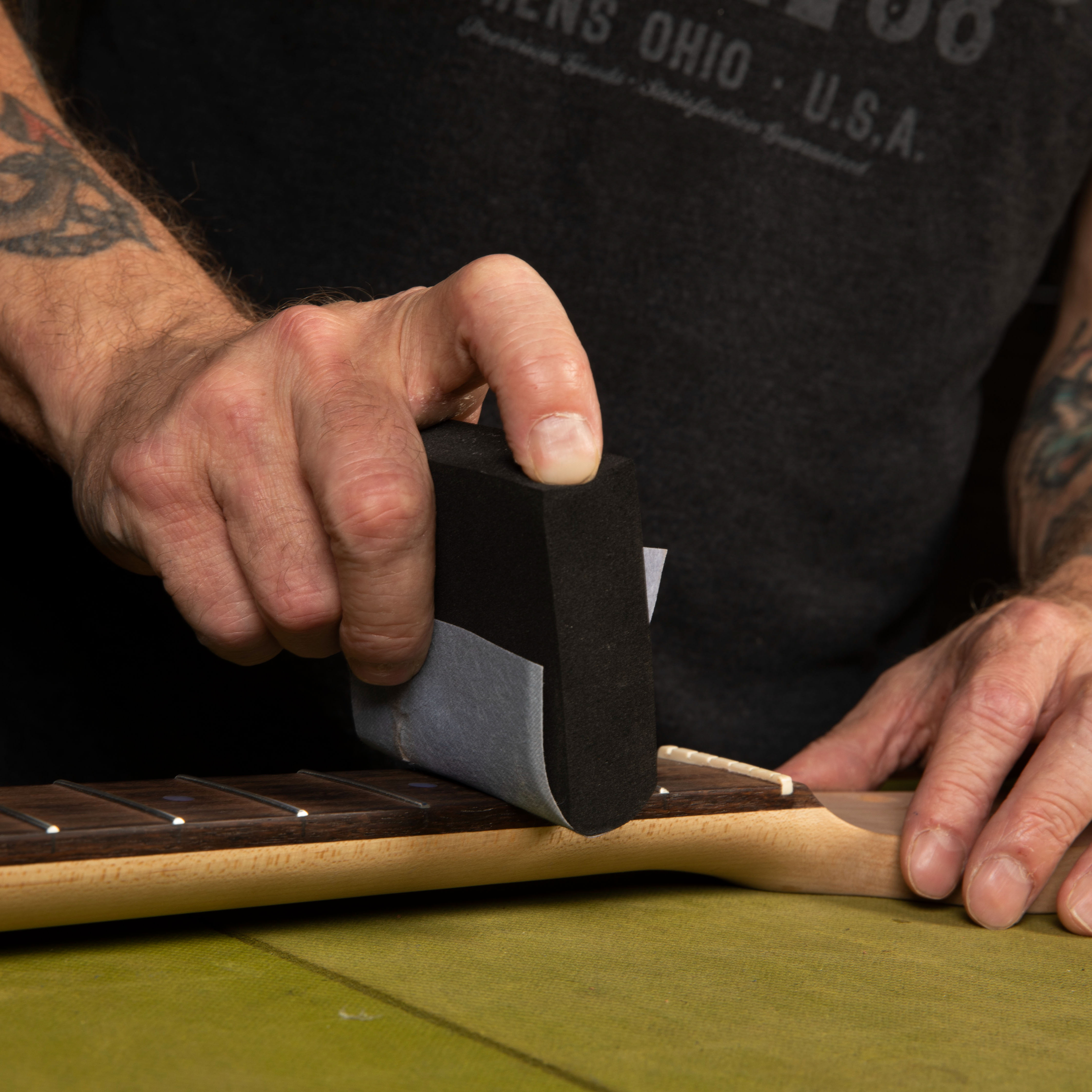 Parce qu’elles s’adaptent à n’importe quelle forme de surface, elles sont idéales pour polir les finitions de guitare profilées, les frettes, les pickguards en plastique, les incrustations de perles et plus encore. Les premiers échantillons que nous avons reçus ont été jalousement accumulés dans nos ateliers, devenant rapidement des favoris pour le polissage des écrous et des selles, et pour les retouches de finitions laquées.