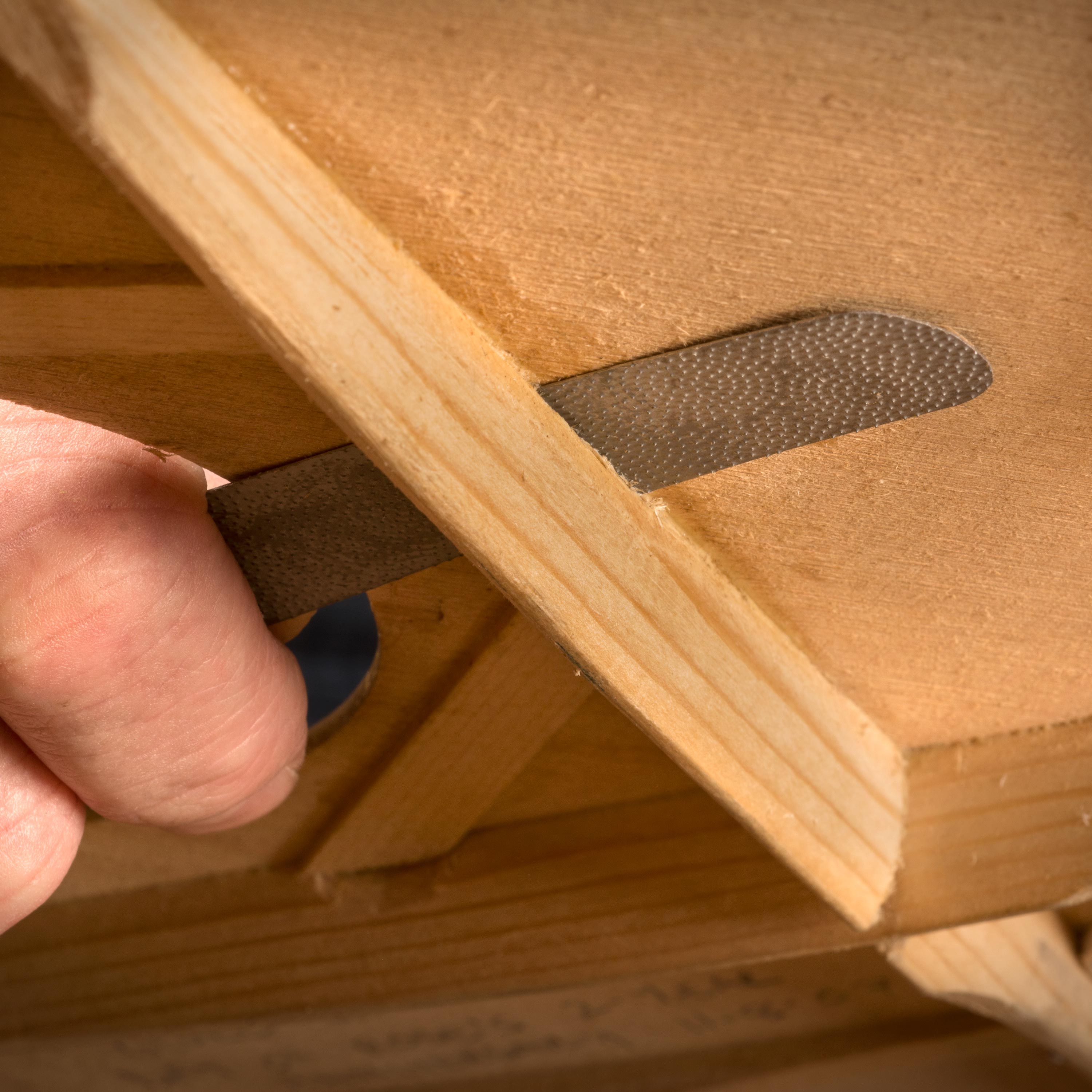 - Nettoyez l’ancienne colle sur une attelle lâche. Il suffit de glisser une tranche de Sharkskin entre le haut et l’attelle et de poncer