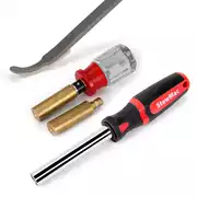 La clé d’ Stop Tailpiece a une pointe de tournevis épaisse encastrée dans une douille à paroi lisse qui s’adapte parfaitement au goujon de la pièce à queue de 1/2" (12,70 mm) de diamètre. La douille maintient la clé centrée, pour protéger le placage du goujon et éviter les accidents qui pourraient affecter le haut de la guitare. Fabriqué en acier à outils, avec une poignée en plastique durable. Nous remercions les guitaristes Paul Verticchio et Jerry Barnstable d’avoir suggéré cet outil.