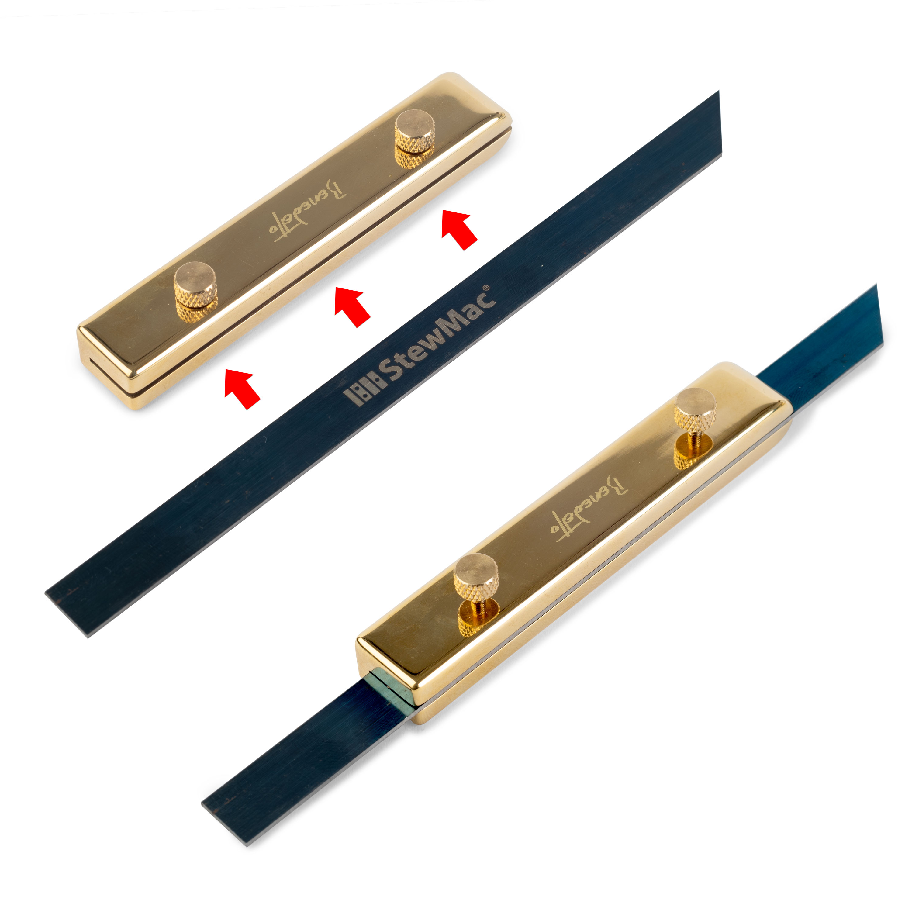pour le maître luthier Bob Benedetto de trouver une solution simple : une poignée de racloir personnalisée pour exposer la quantité exacte de lame dont vous avez besoin. Et la poignée vous offre plus de confort et de contrôle sur les courbes délicates d’un corps de guitare. Désormais, même les débutants peuvent gratter les binding sans s’inquiéter. La poignée en laiton poli a une sensation agréable dans la main et est également superbe !