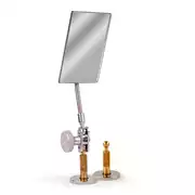 Le miroir mesure 1-5/8 po x 2-1/2 po (41,28 mm x 63,50 mm po), fixé à un bras articulé avec une poignée en laiton pour s’adapter à nos aimants.