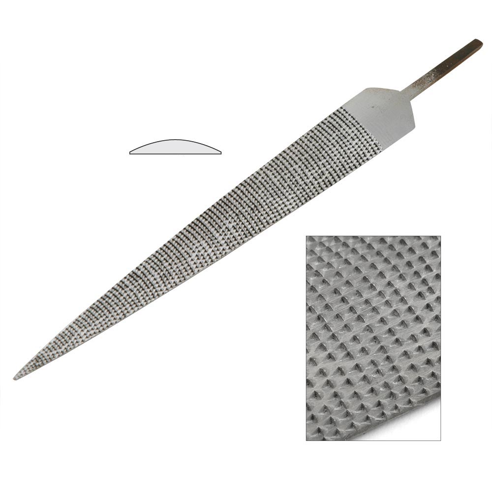 Râpe à double découpe possède deux rayons différents pour façonner rapidement un talon de manche ou la base d’une placage de tête.
