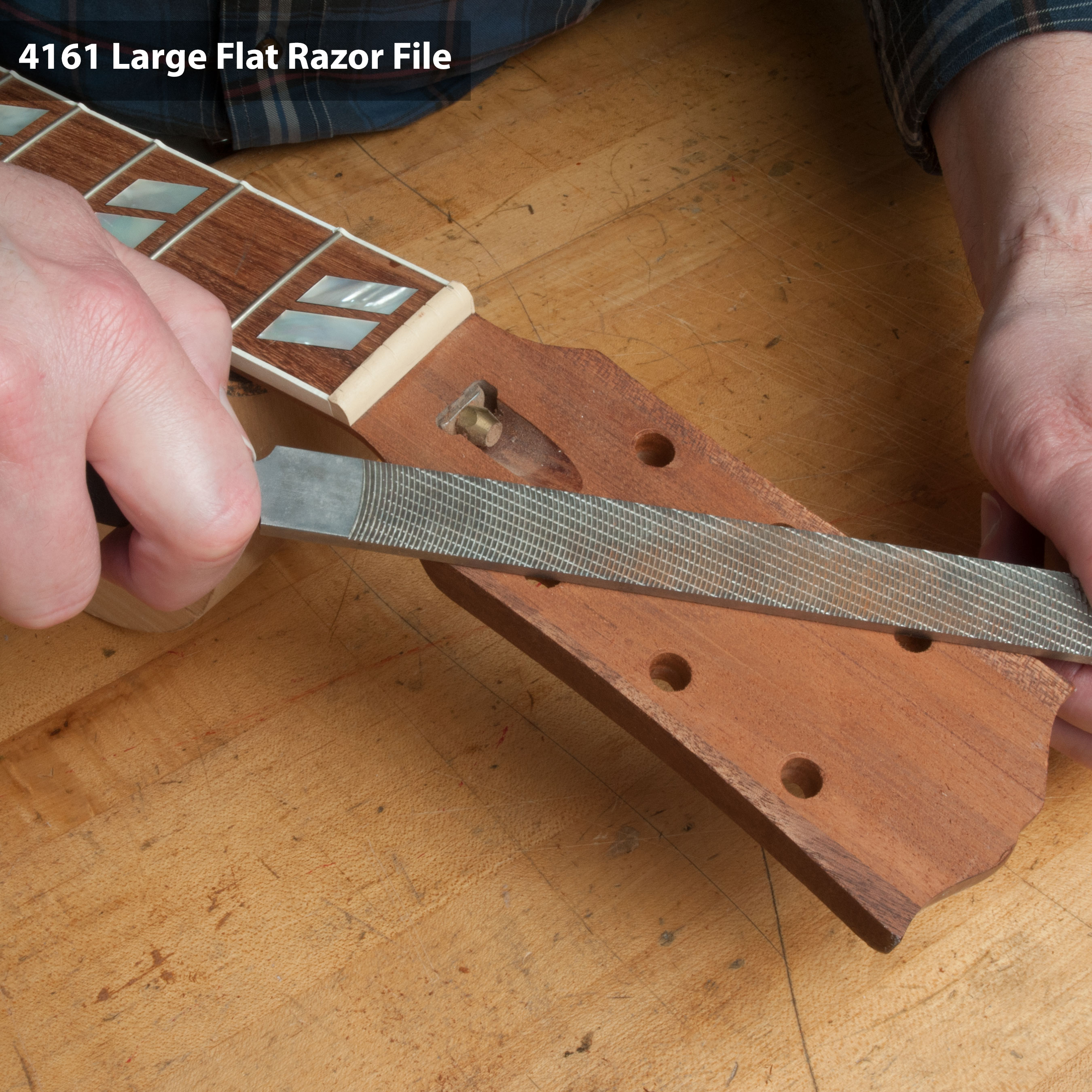 Les limes de grande taille éliminent rapidement beaucoup de bois. Utilisez-les pour dégrossir les ébauches de manche ou vous lancer dans ce projet de guitare corps solide . Comprend une poignée profilée facile à saisir pour une utilisation sûre et confortable. Les filetages à l’intérieur de la poignée saisissent fermement la languette du lime.Surface de