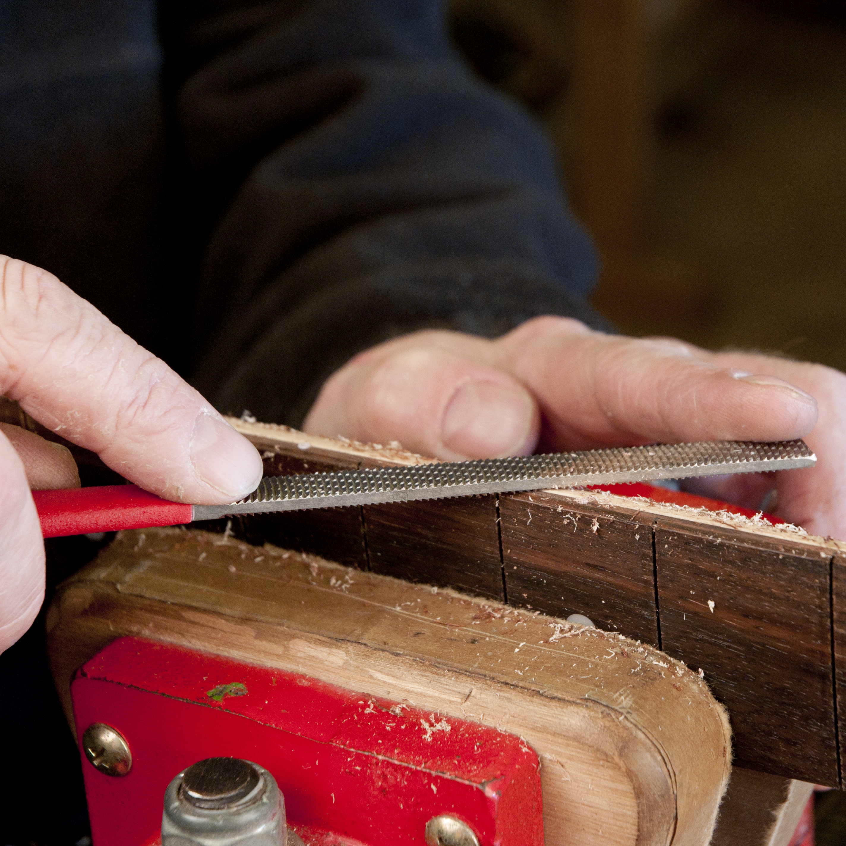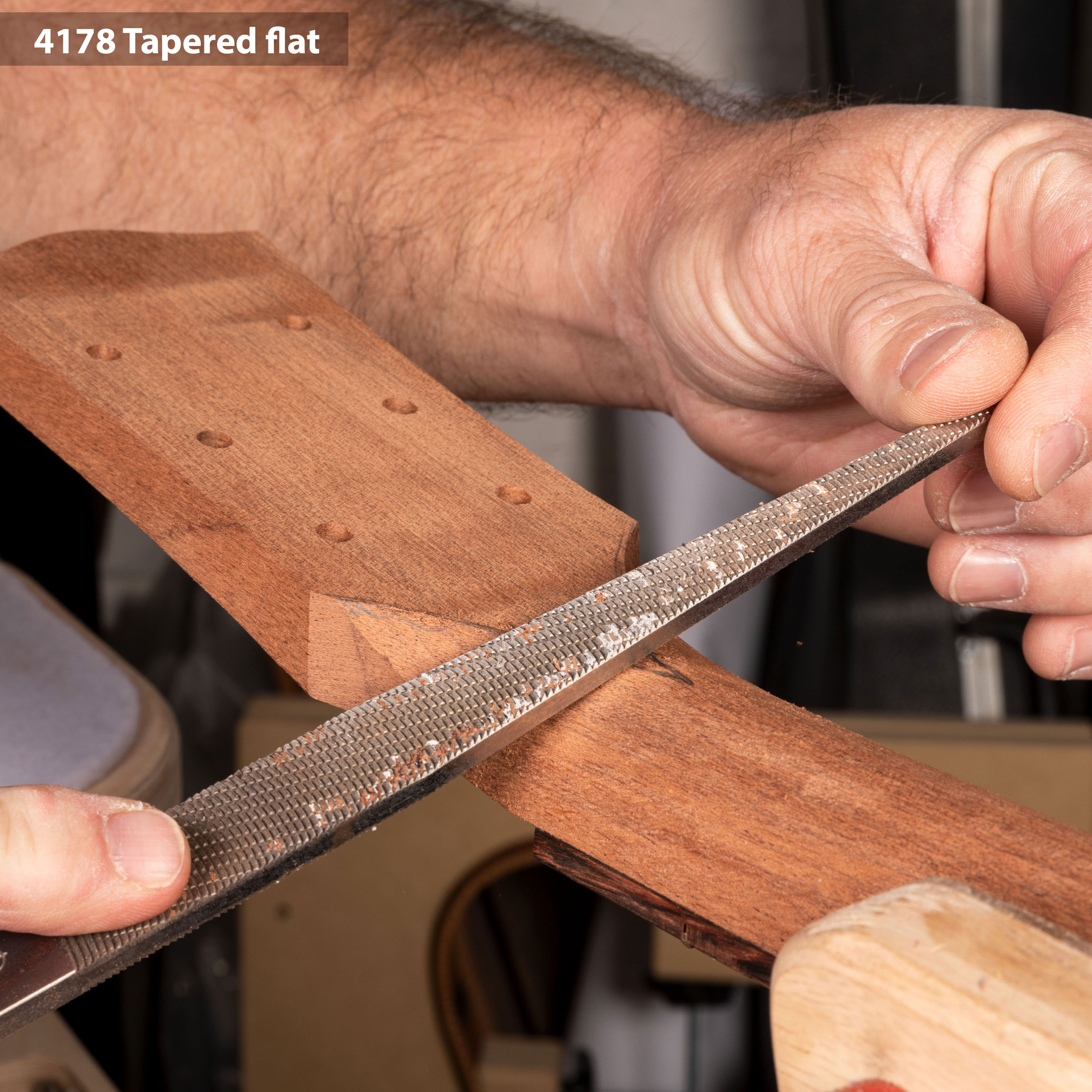 Les fichiers coniques offrent un peu plus de polyvalence que les fichiers volumineux. Utilisez-les lorsque vous façonnez une volute sur un manche de guitare acoustique, que vous mélangez des courbes ou que vous travaillez sur des endroits difficiles comme la corne d’une guitare corps solide . Comprend une poignée profilée facile à saisir pour une utilisation sûre et confortable. Les filetages à l’intérieur de la poignée saisissent fermement la languette du lime.Surface de