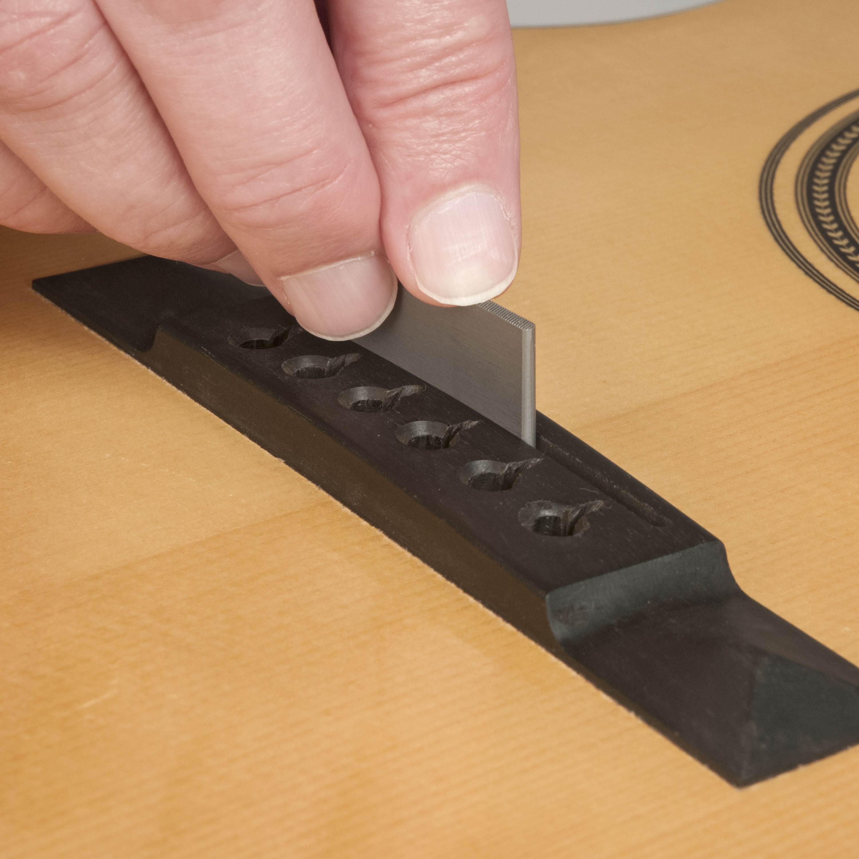 Un contact uniforme de la sillet avec le bas de la fente du pont maximisera la tonalité et le volume. Ceci est essentiel pour la réponse à l’ pickup sous-selle !