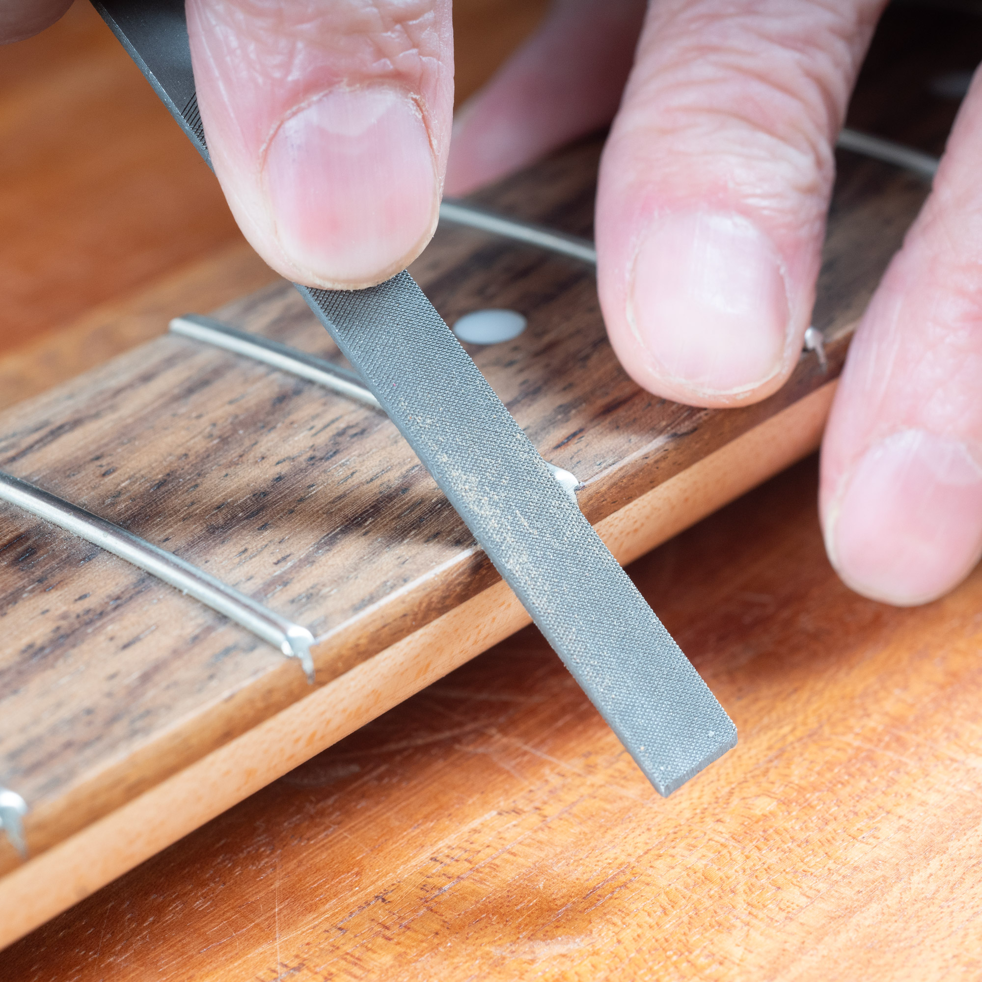 Si vous ne deviez posséder qu’une seule lime, ce serait celle-là. De la touche au sillet de tête, en passant par les frettes, cette lime est aussi polyvalente qu’un couteau suisse ! Nous en avons une dans nos caisses à outils, sur notre établi, et oui, même dans notre poche, quand on travaille sur une guitare.
