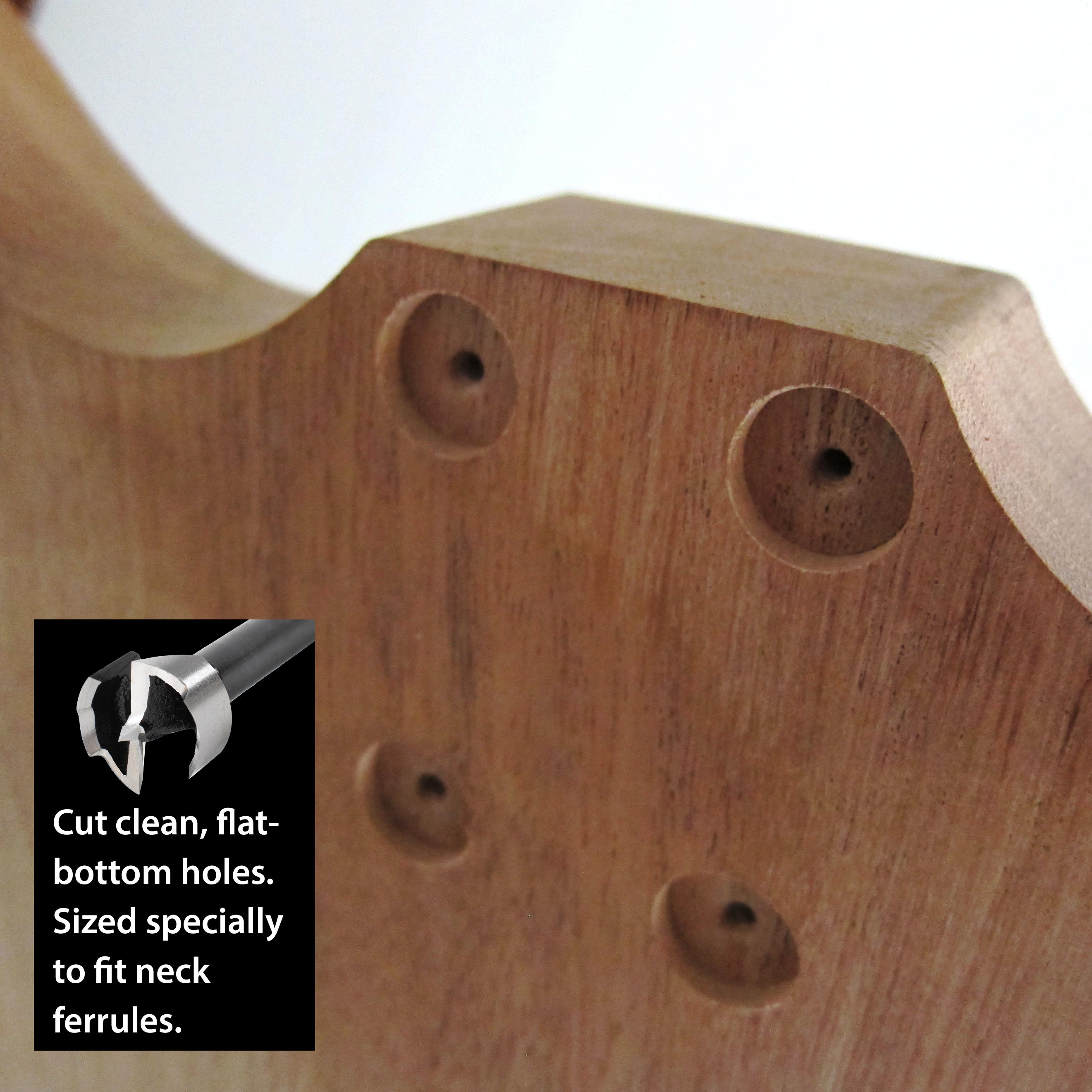 Percez des trous à fond plat avec des bords lisses et propres. Idéal pour l’installation de la ferrule de montage de col encastrée (après tout, il n’y a pas de plaque de manche pour cacher les trous cassés).